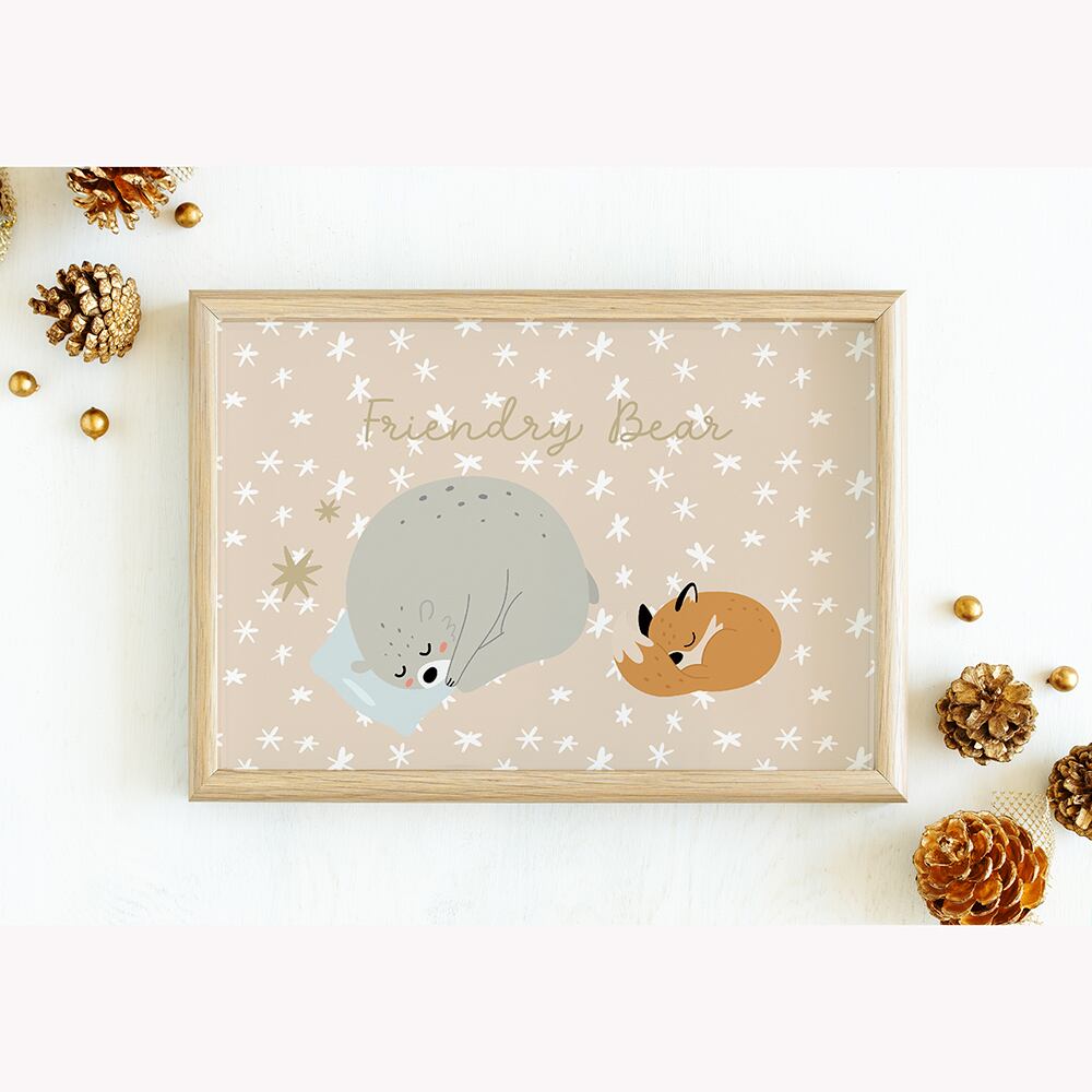 北欧ポスター シロクマとキツネ / i0894 / キツネや小鳥と一緒にリラックス 子供部屋 インテリアポスター
