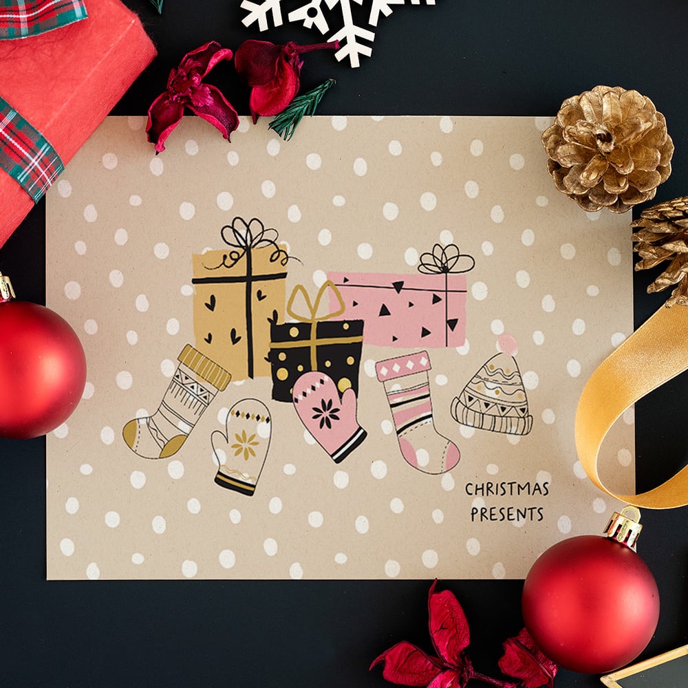 北欧ポスター クリスマスプレゼント / i0882 / クリスマスツリーやお家 可愛いオーナメント 子供部屋にも インテリアポスター