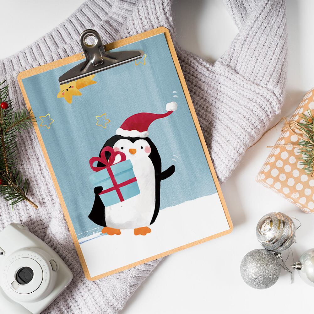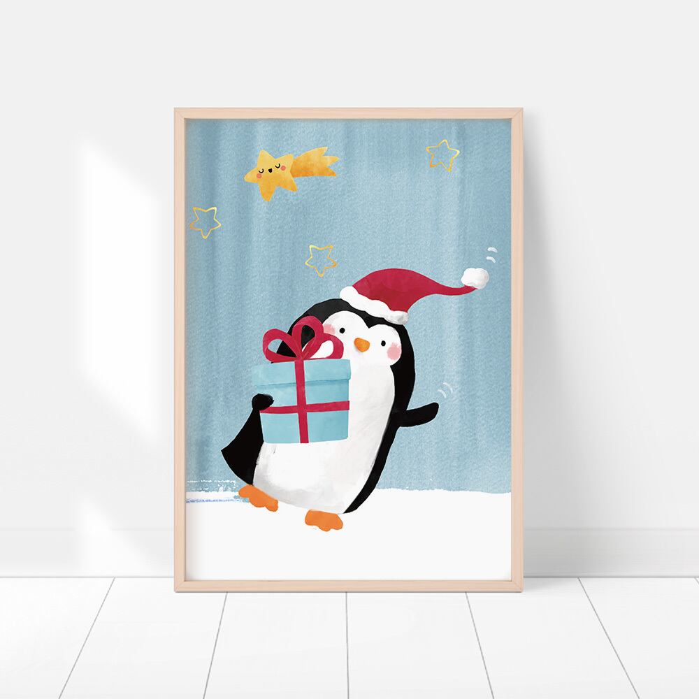 キッズポスター 可愛いペンギン / i0872 / 天使や動物 子供部屋に可愛いクリスマスポスター