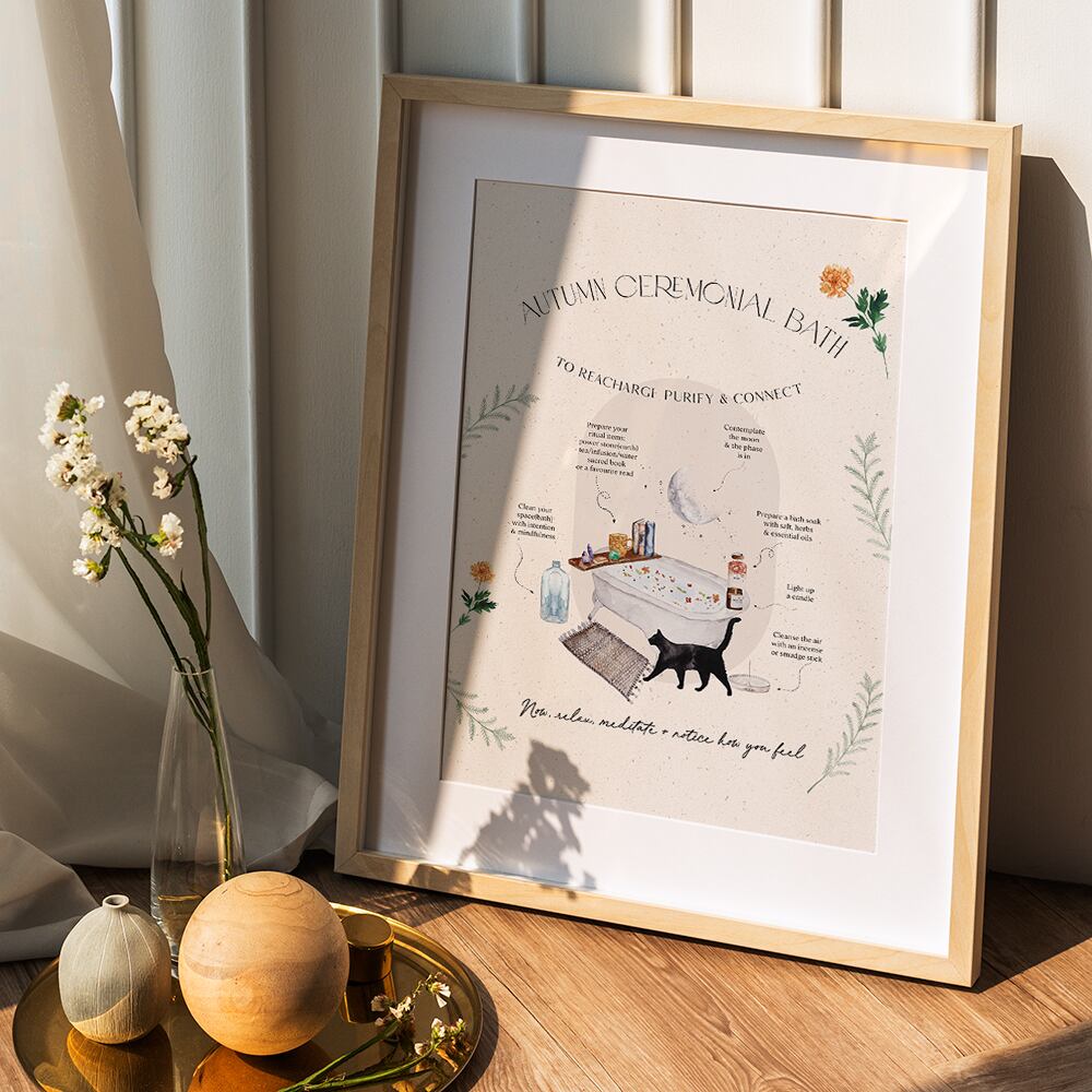 パンプキンパイやタルトのレシピや、ドリンク、セルフケアなど、秋の過ごし方をモチーフにしたポスターです。キッチンや洗面所に飾ってみてくださいね。