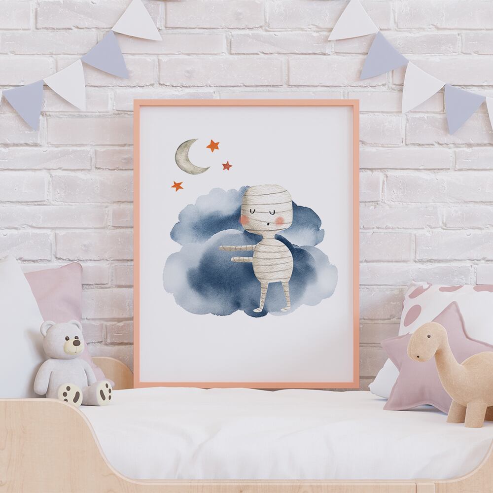 キッズハロウィンポスター ミイラ男 / i0990 / 可愛いオバケやかぼちゃ コウモリやフランケン 子供部屋に