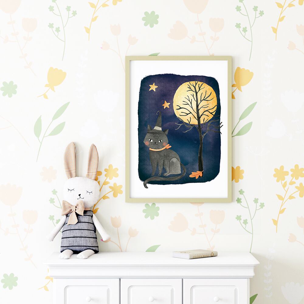 キッズハロウィンポスター 黒猫 / i0998 / 可愛いオバケやかぼちゃ コウモリやフランケン 子供部屋に