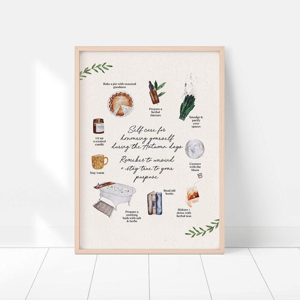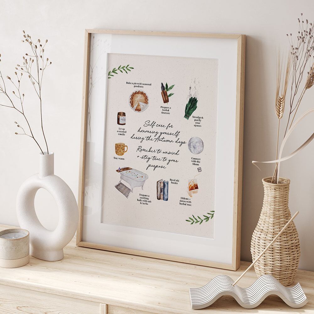 パンプキンパイやタルトのレシピや、ドリンク、セルフケアなど、秋の過ごし方をモチーフにしたポスターです。キッチンや洗面所に飾ってみてくださいね。