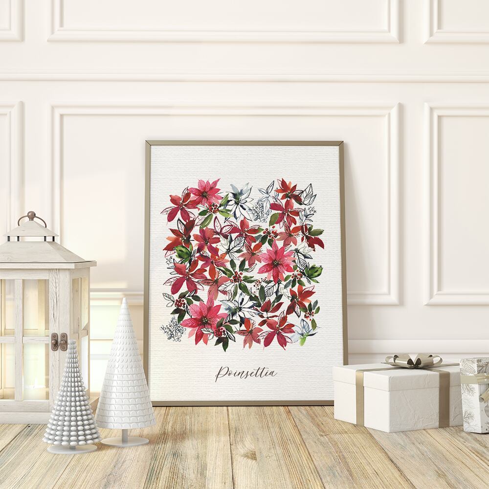 クリスマスの植物ポスター / i1046 / モミの木やポインセチア リースやスワッグ、アレンジメント