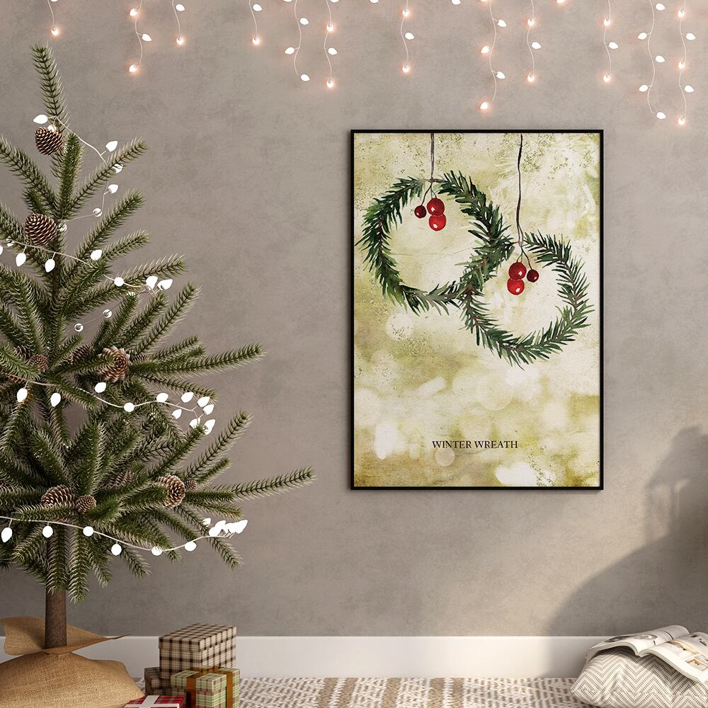 クリスマスのリースポスター / i1052 / モミの木やポインセチア リースやスワッグ、アレンジメント