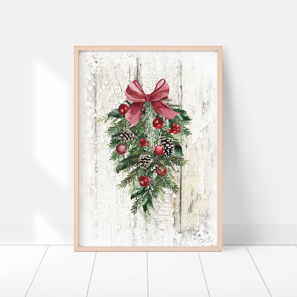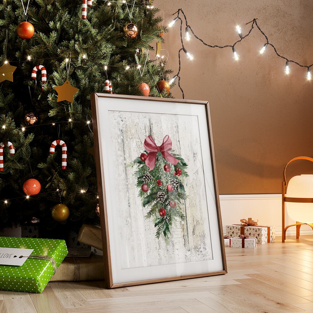 クリスマスのスワッグポスター / i1054 / モミの木やポインセチア リースやスワッグ、アレンジメント