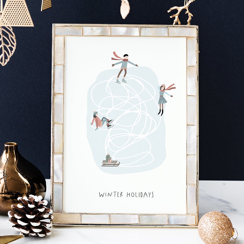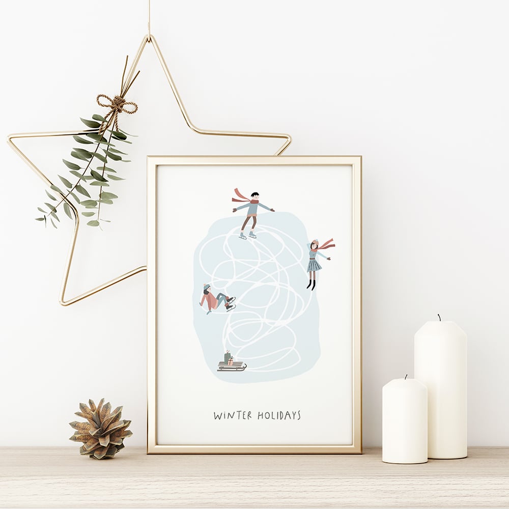 北欧クリスマスのポスター / i1037 / 冬景色の中でスケートをする人々 冬の街