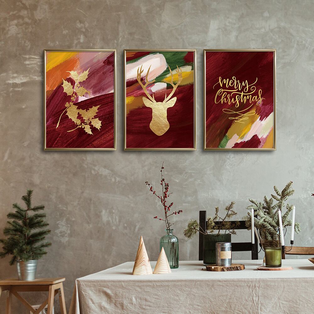 クリスマスカラーのペイントポスター / i1080 / ペイント抽象画とクリスマスモチーフ
