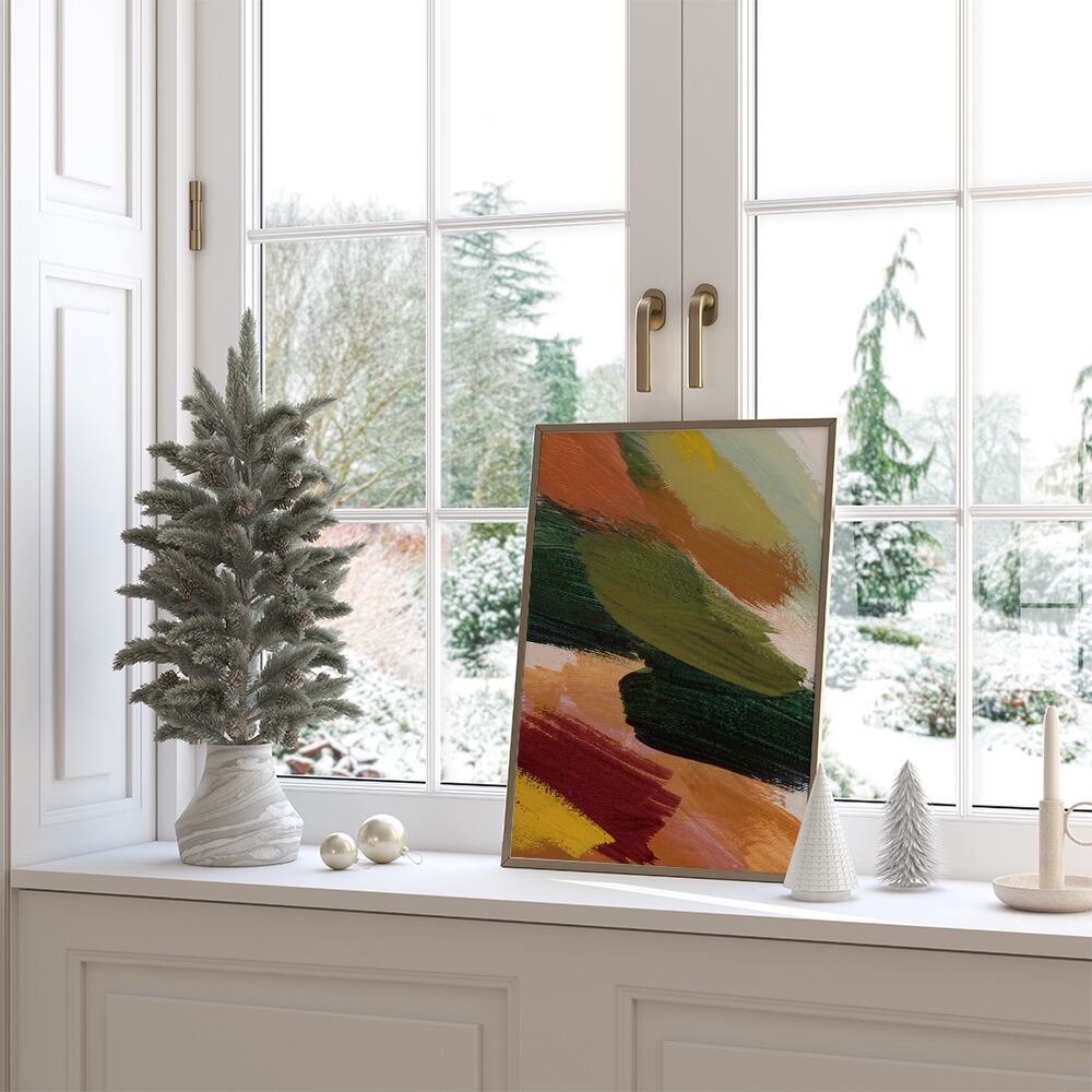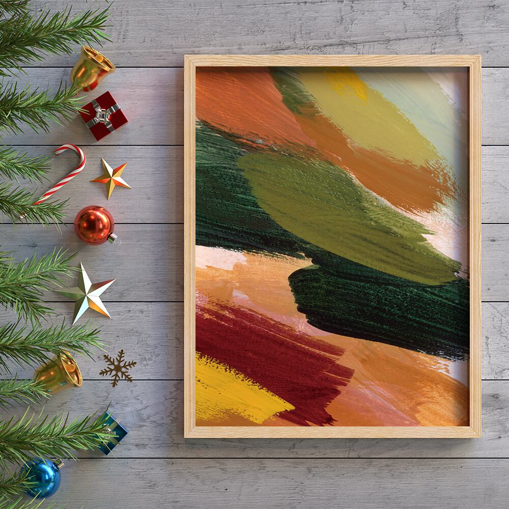 クリスマスカラーのペイントポスター / i1067 / ワインレッドやグリーンのモダンなペイント抽象画