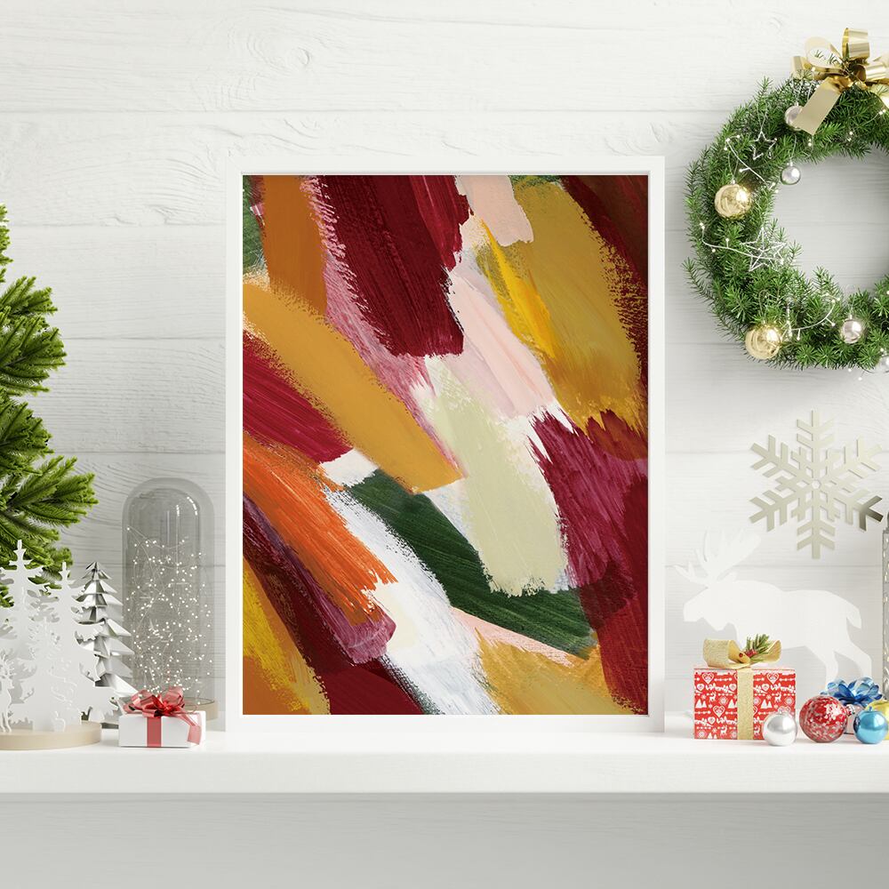 クリスマスカラーのペイントポスター / i1068 / ワインレッドやグリーンのモダンなペイント抽象画