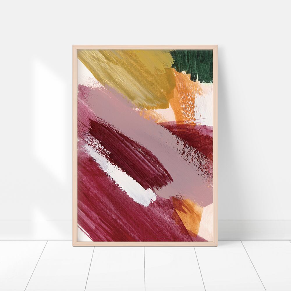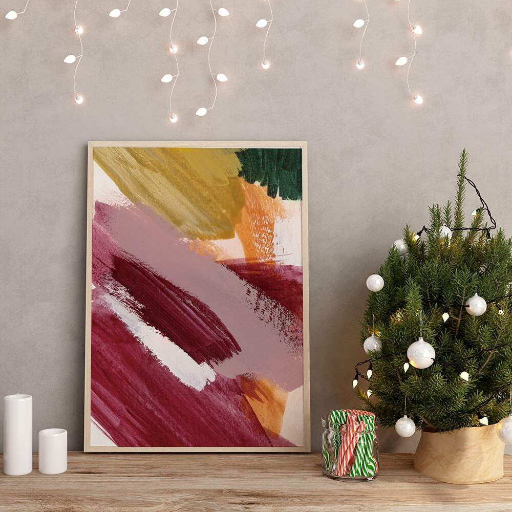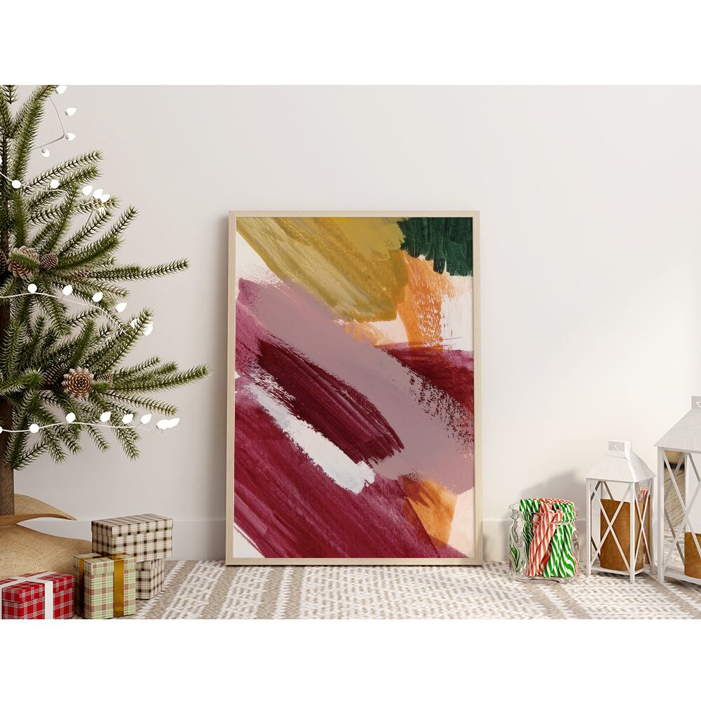クリスマスカラーのペイントポスター / i1074 / ワインレッドやグリーンのモダンなペイント抽象画