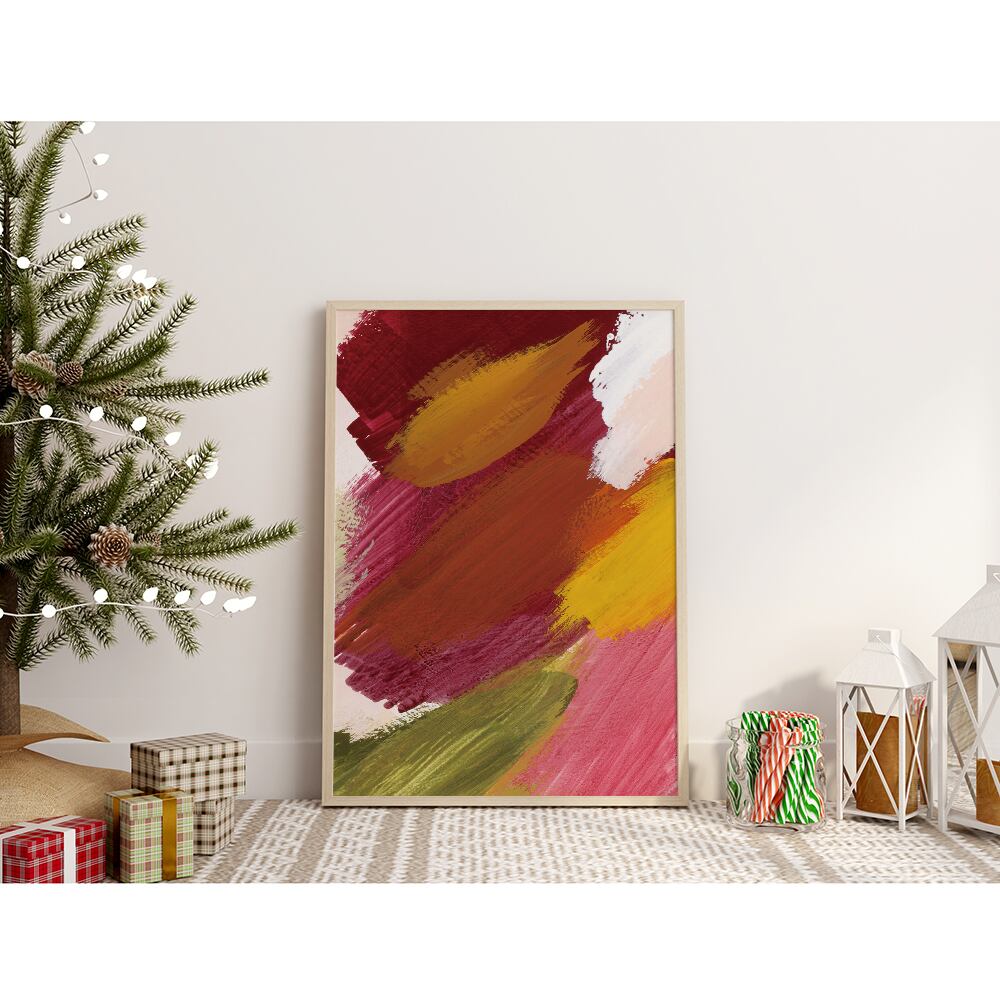 クリスマスカラーのペイントポスター / i1075 / ワインレッドやグリーンのモダンなペイント抽象画
