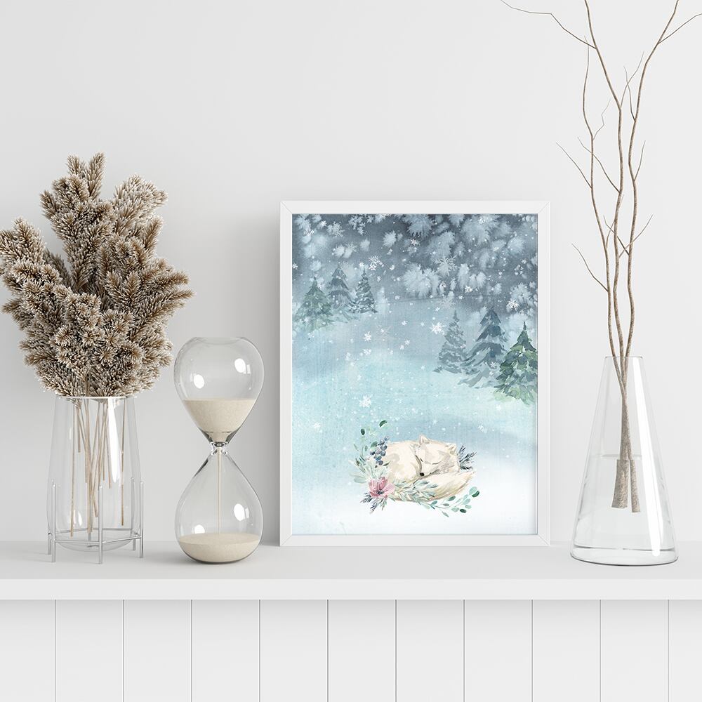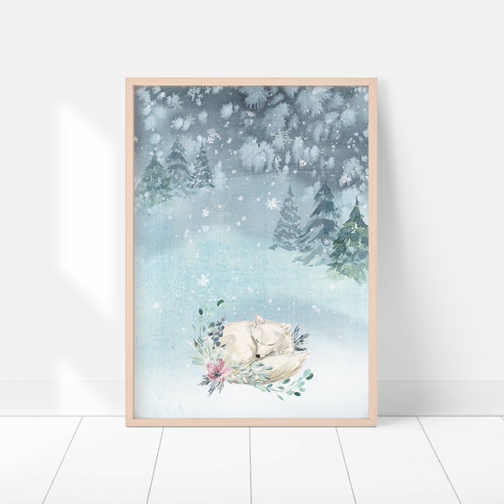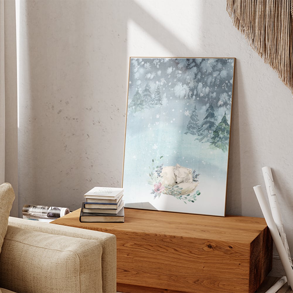 冬の動物ポスター / i1102 / パステル調の優しい風景 白くま、うさぎ、きつね
