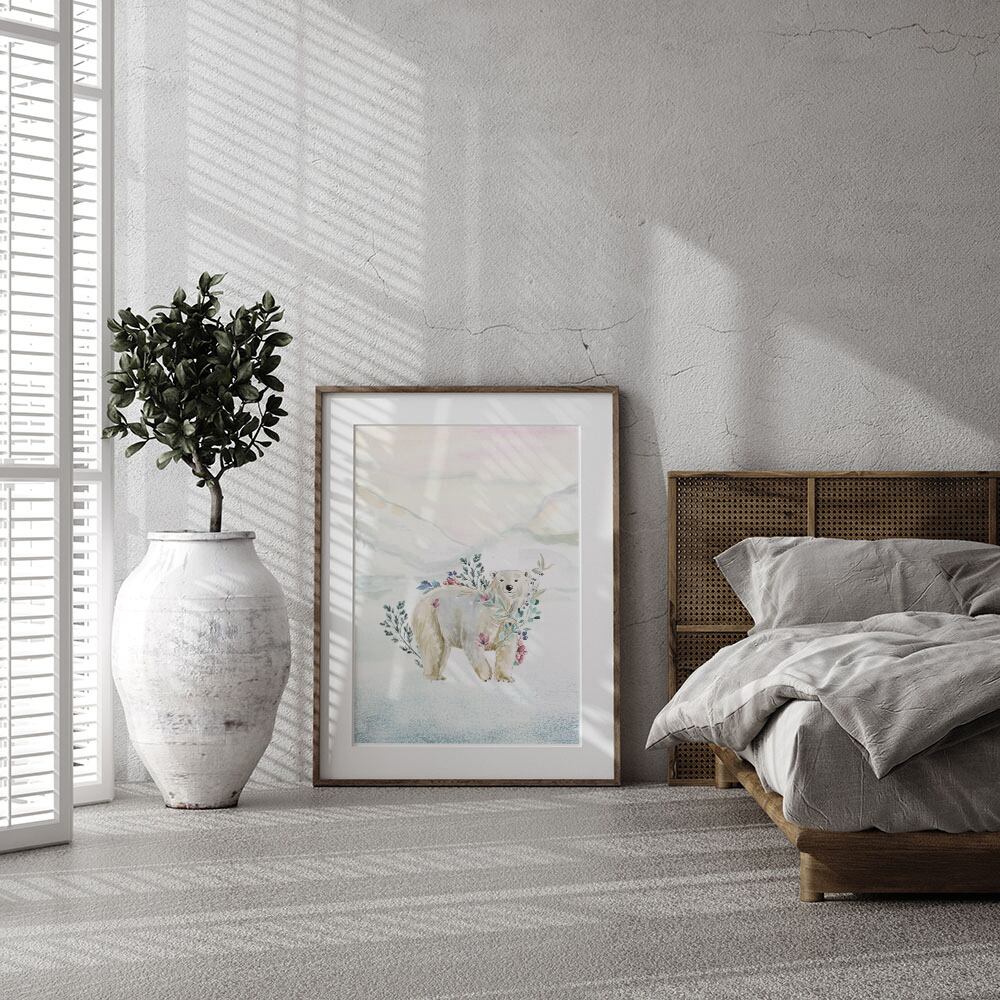 冬の動物ポスター / i1105 / パステル調の優しい風景 白くま、うさぎ、きつね