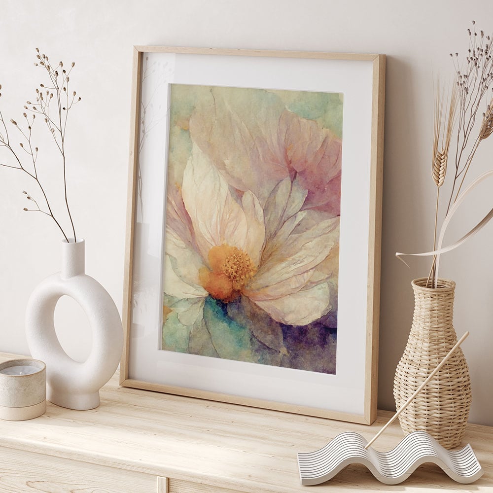 カラフルな春のアートポスターです。幻想的なレインボーカラーで、花びらなどが描かれています。一足早く、春の訪れが感じられそうですね。