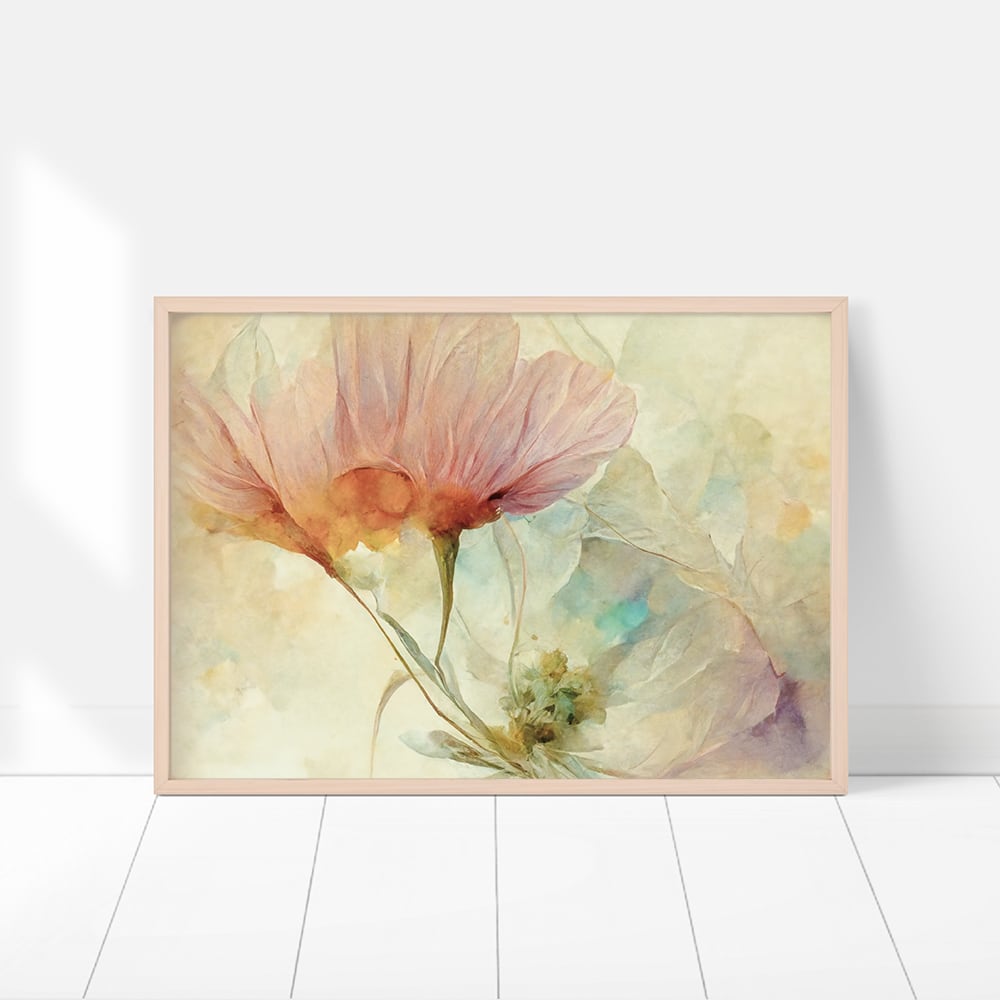 カラフルな春のアートポスターです。幻想的なレインボーカラーで、花びらなどが描かれています。一足早く、春の訪れが感じられそうですね。