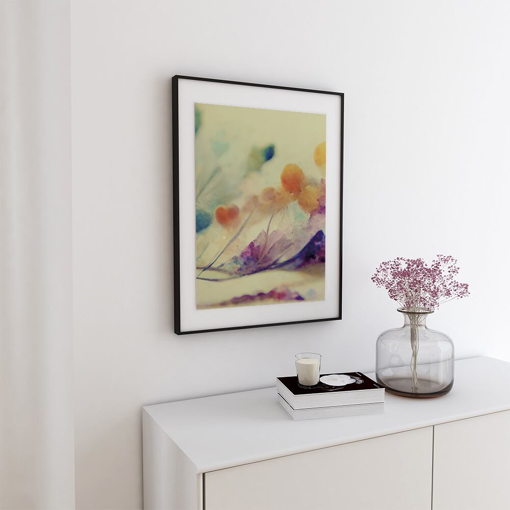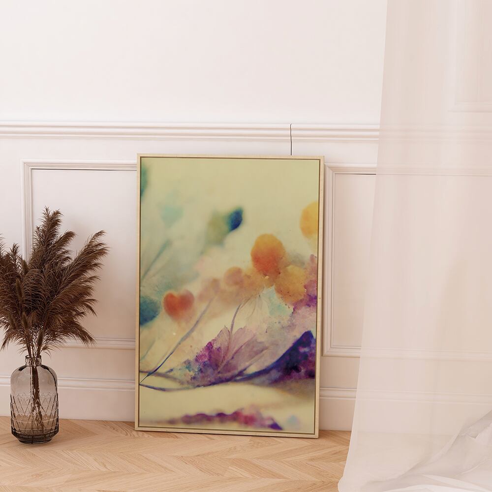 カラフルな春のアートポスターです。幻想的なレインボーカラーで、花びらなどが描かれています。一足早く、春の訪れが感じられそうですね。