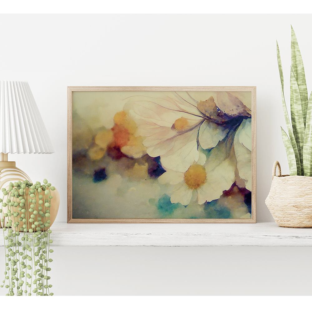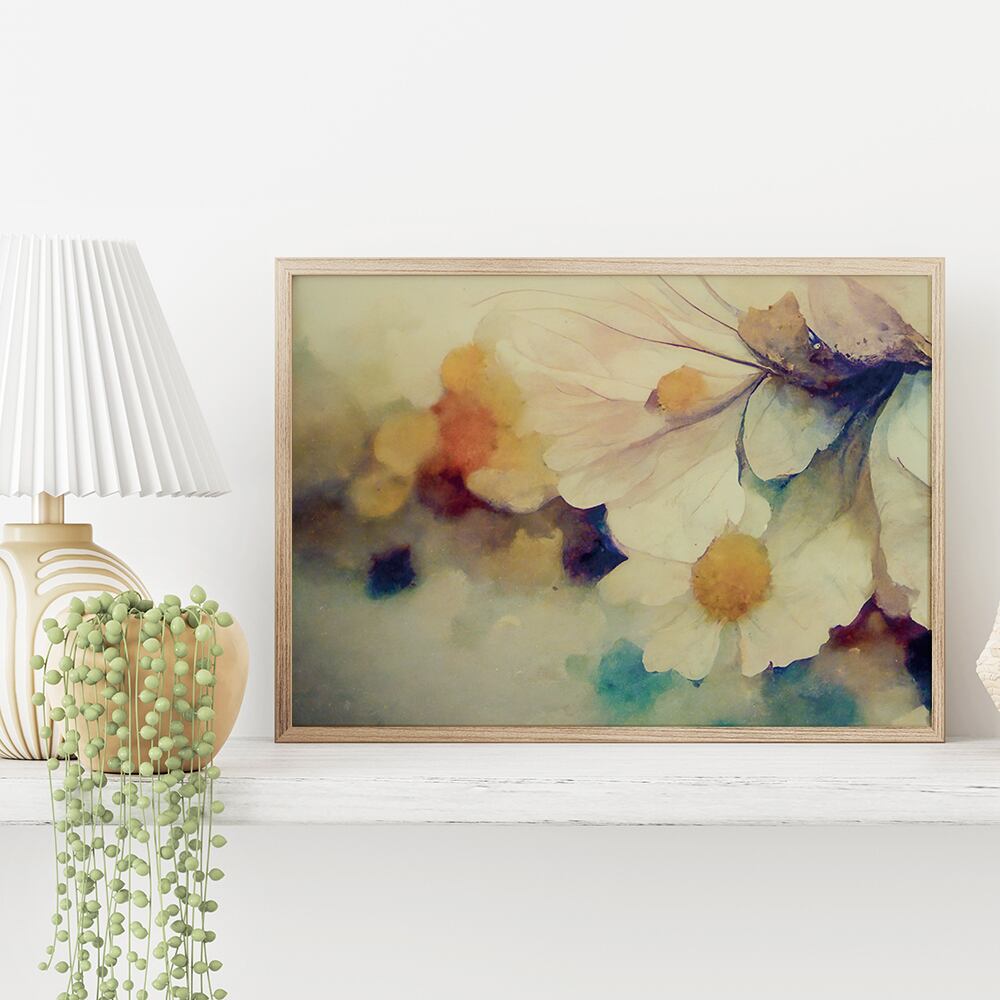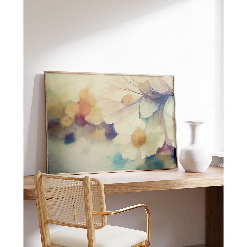 カラフルな春のアートポスターです。幻想的なレインボーカラーで、花びらなどが描かれています。一足早く、春の訪れが感じられそうですね。