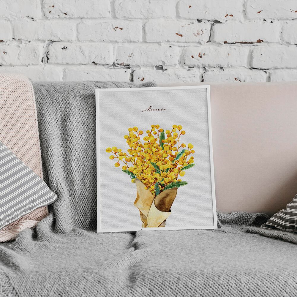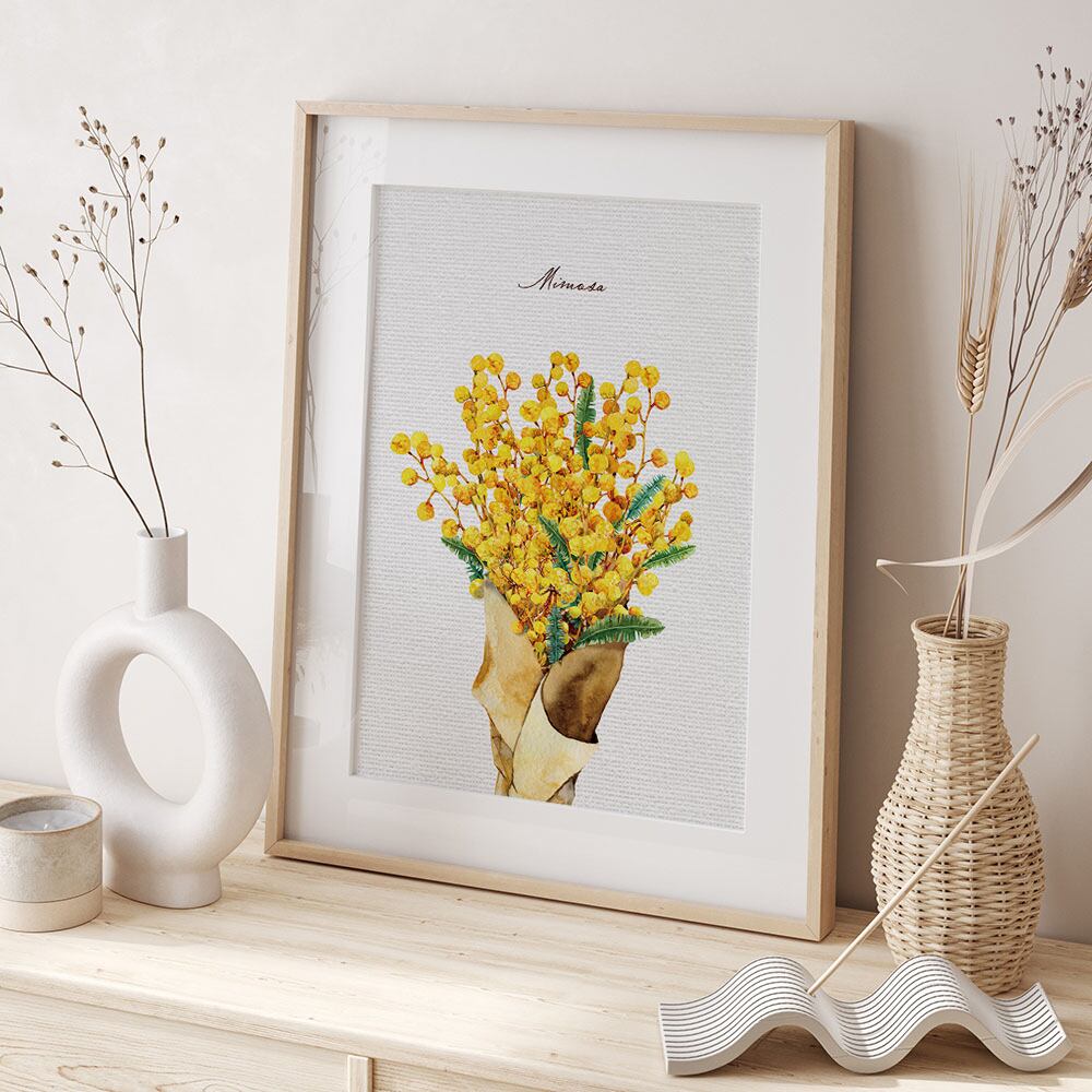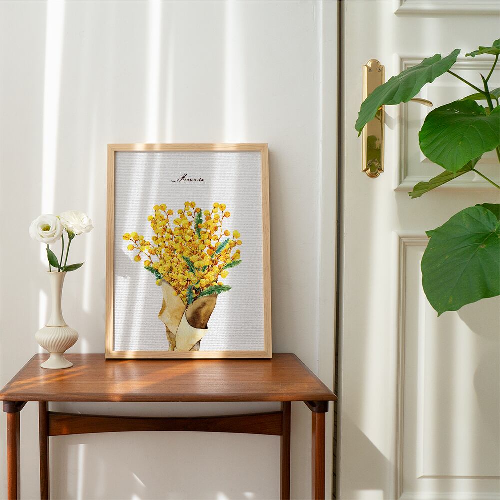 ミモザのポスター / i1127 / 黄色くかわいい春のミモザ ボタニカル アートポスター