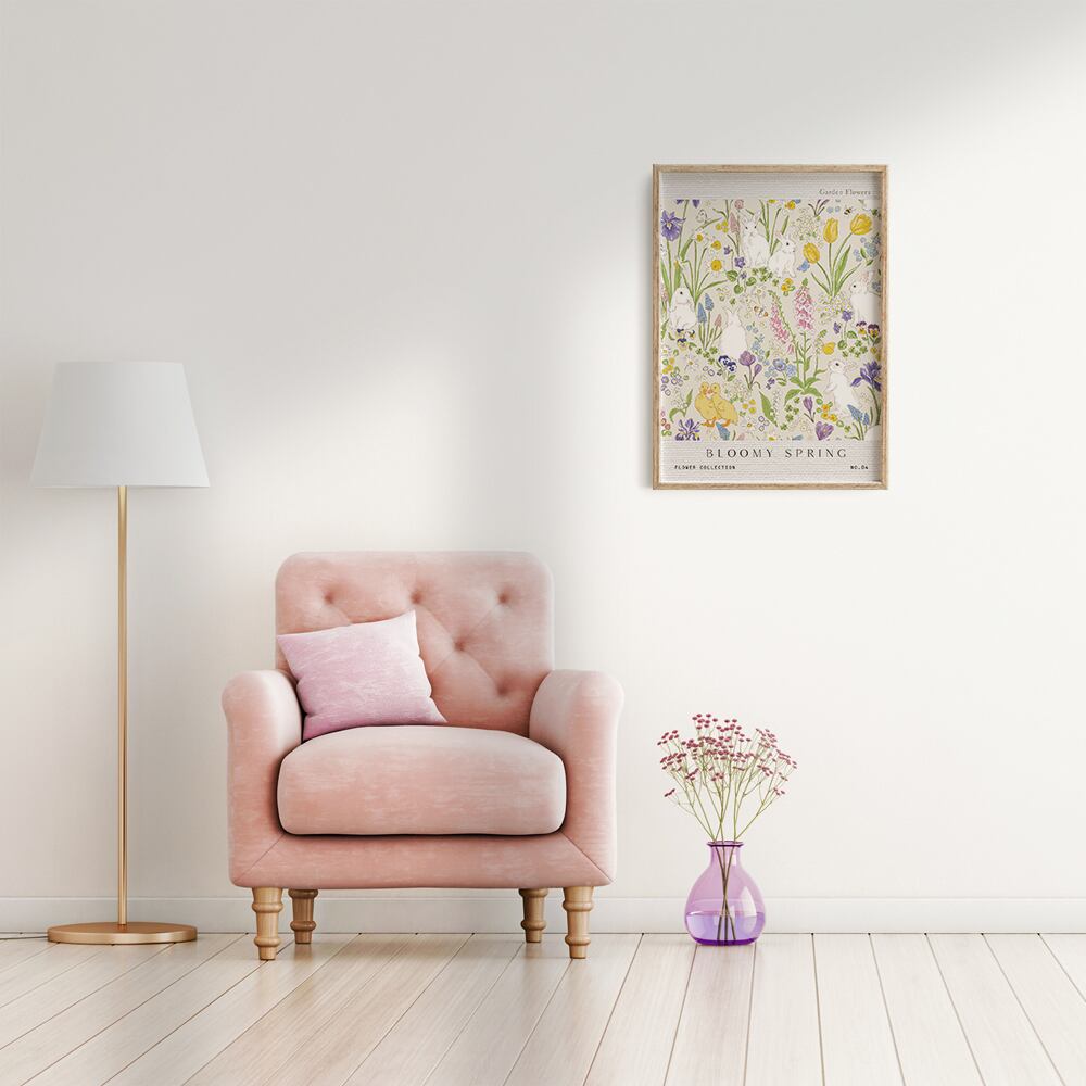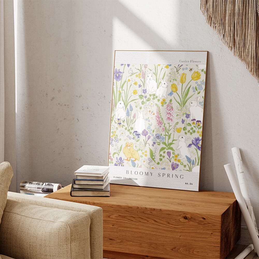 春の庭ポスター / i1160 / チューリップやミモザ うさぎやツバメなど 春の花ポスター