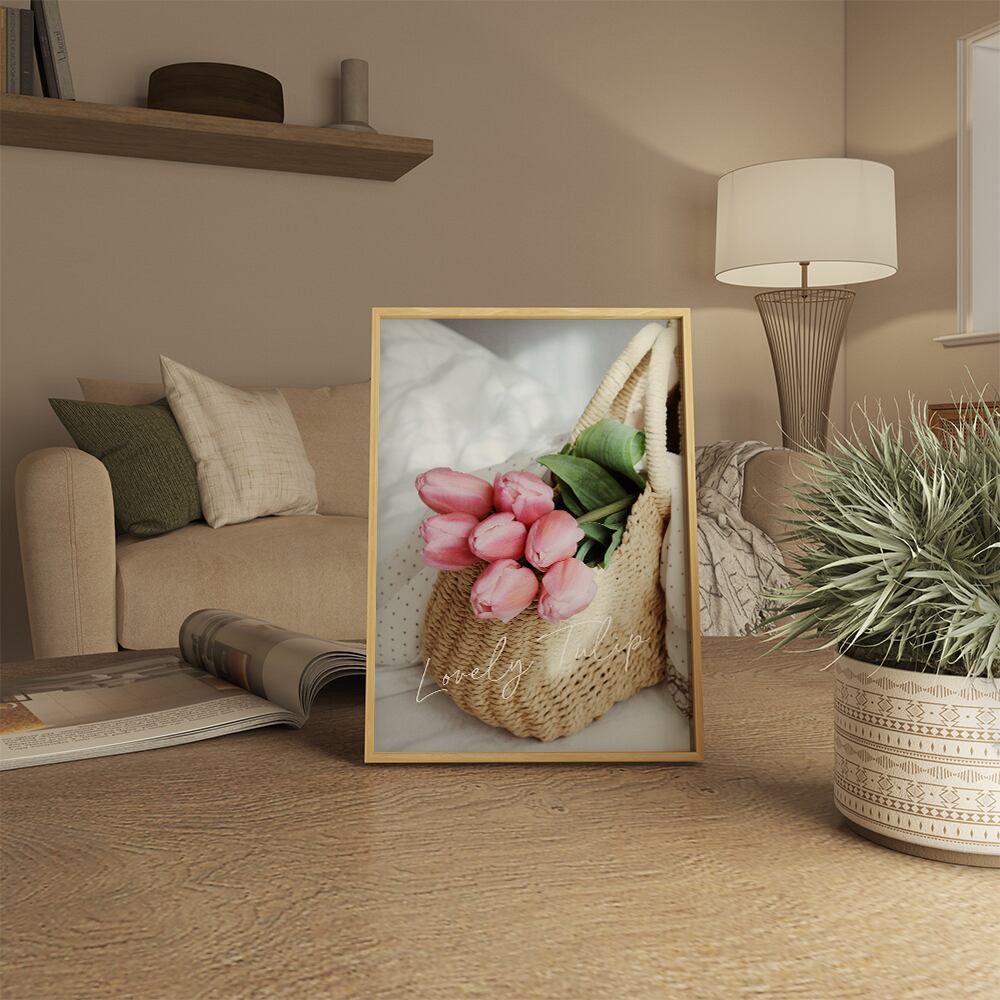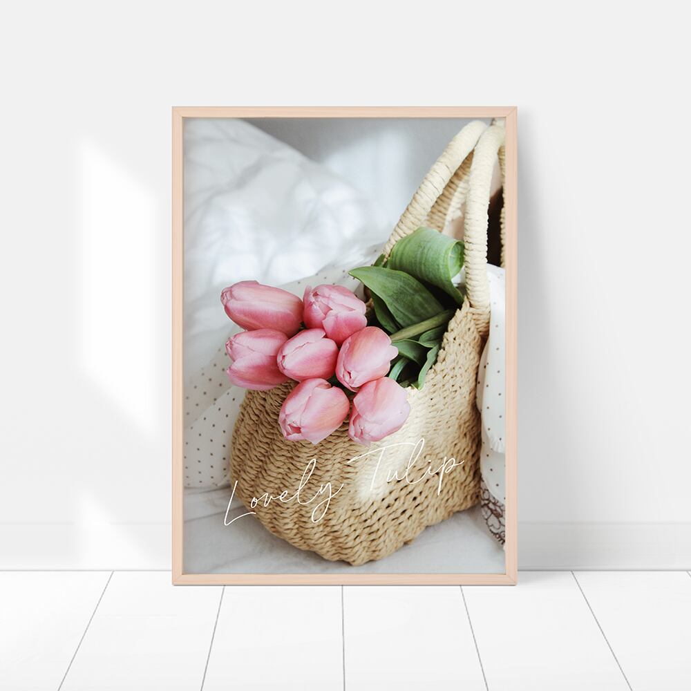 春にぴったりなチューリップのフォトポスターです。ピンク、パープル、オレンジ、白など色とりどりの種類をご用意いたしました。英字を入れて、おしゃれな雰囲気にしてみました。