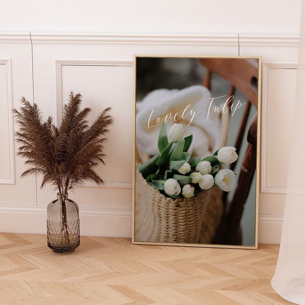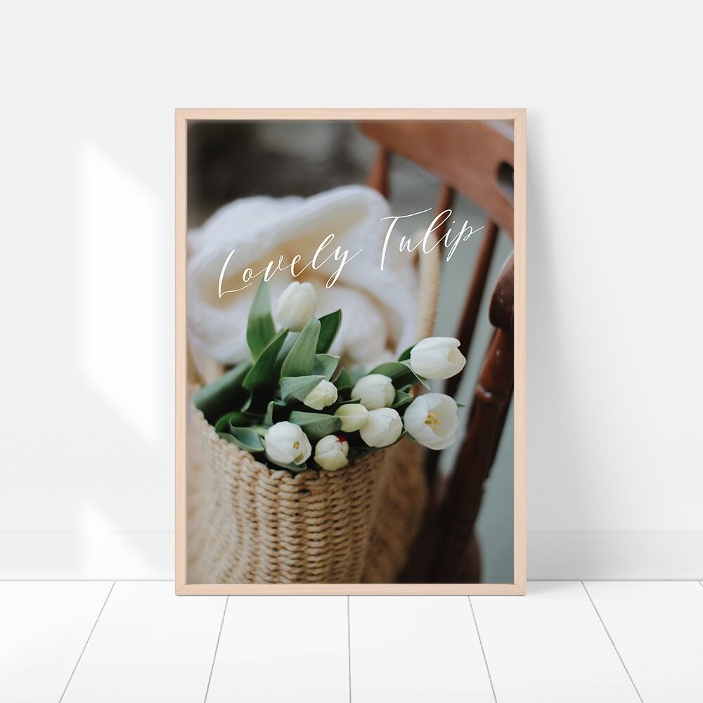 春にぴったりなチューリップのフォトポスターです。ピンク、パープル、オレンジ、白など色とりどりの種類をご用意いたしました。英字を入れて、おしゃれな雰囲気にしてみました。