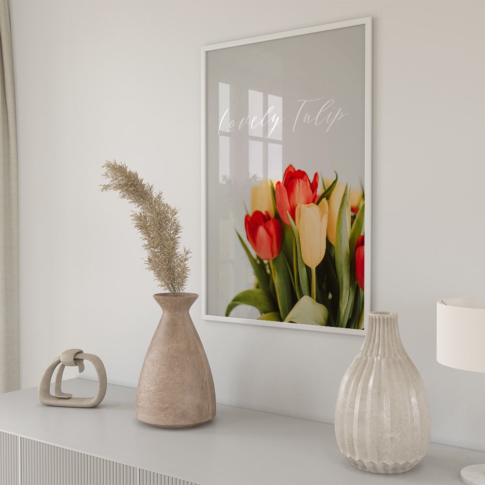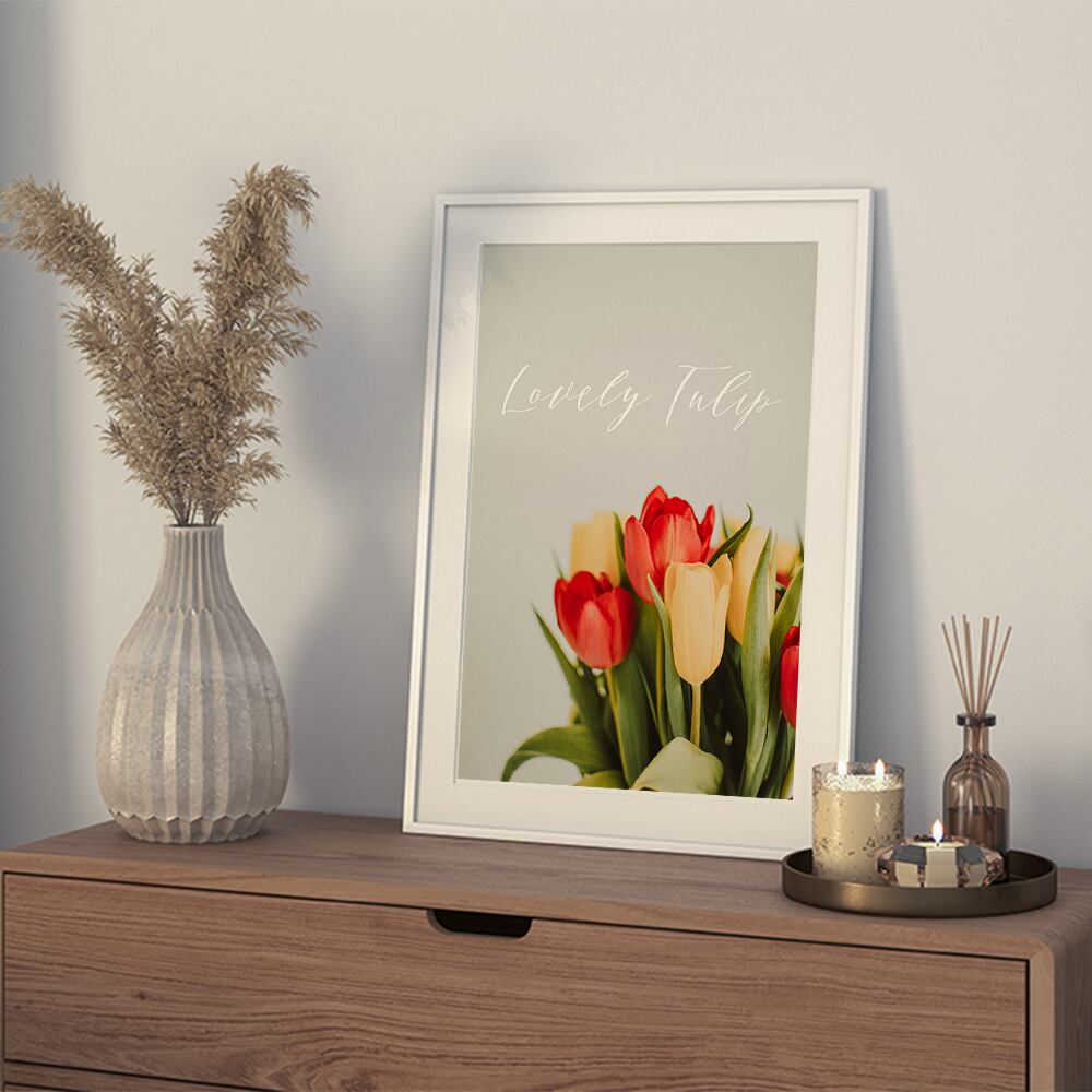 春にぴったりなチューリップのフォトポスターです。ピンク、パープル、オレンジ、白など色とりどりの種類をご用意いたしました。英字を入れて、おしゃれな雰囲気にしてみました。