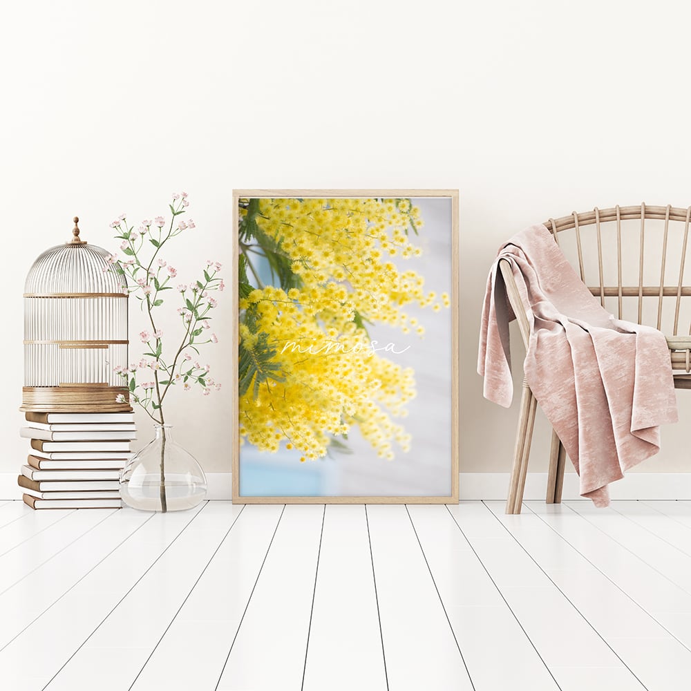 春の花のフォトポスター / i1184 / 黄色いミモザ、スイセンなど インテリアポスター
