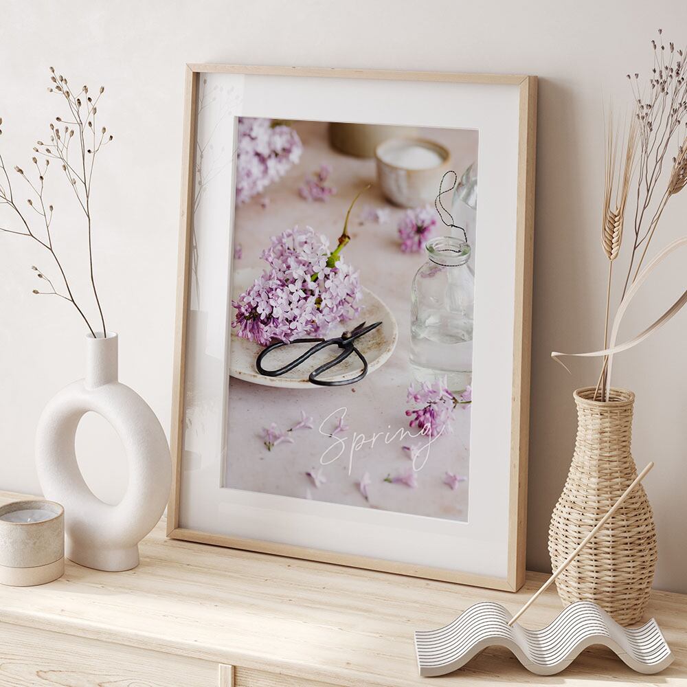 春の花のフォトポスターです。こちらは春を感じられる、綺麗な風景を中心にご用意いたしました。控えめな色で英字を入れて、おしゃれな雰囲気に仕上げています。