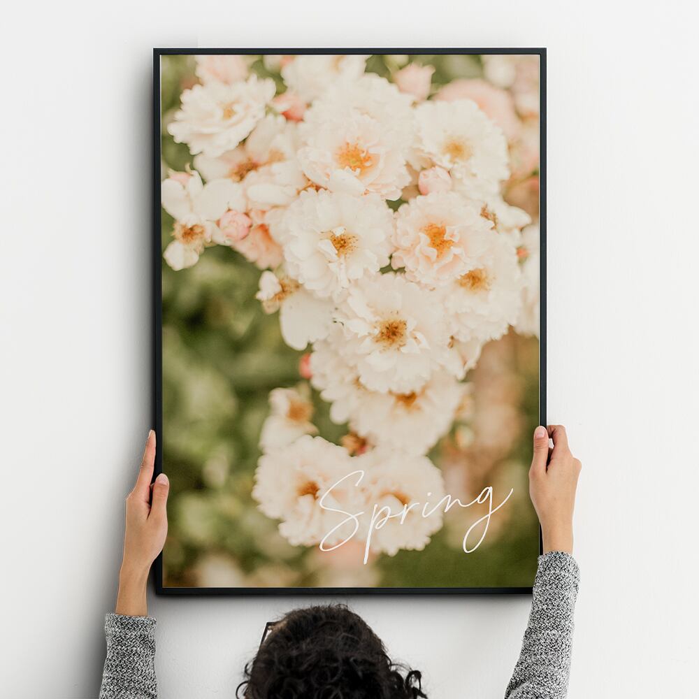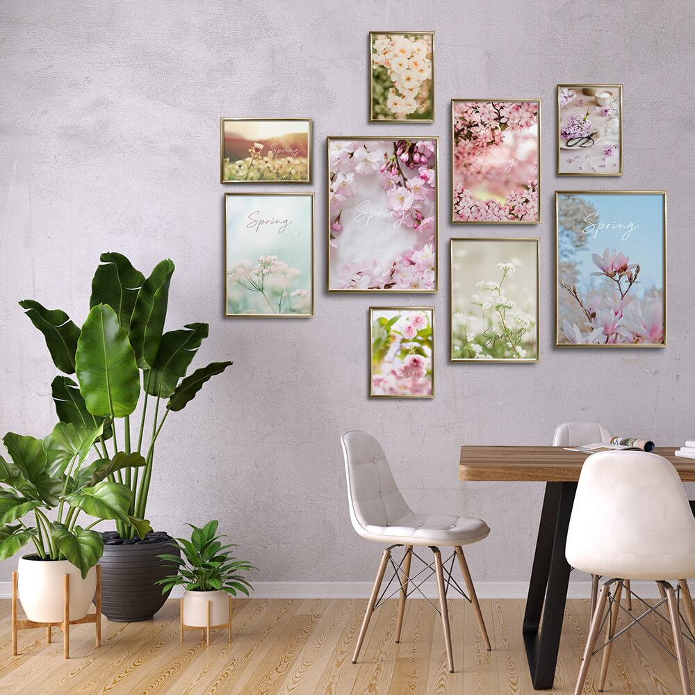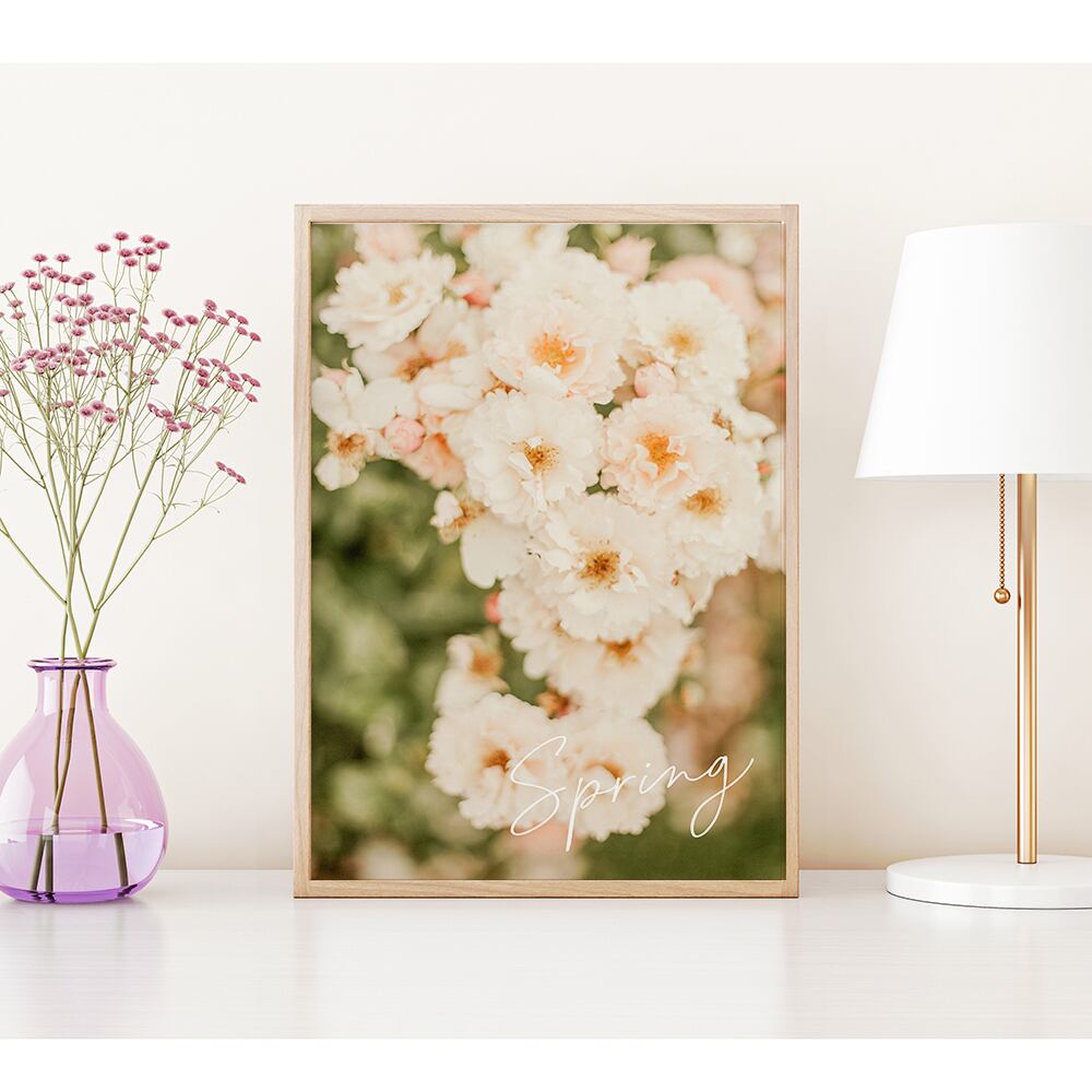 春の花のフォトポスターです。こちらは春を感じられる、綺麗な風景を中心にご用意いたしました。控えめな色で英字を入れて、おしゃれな雰囲気に仕上げています。