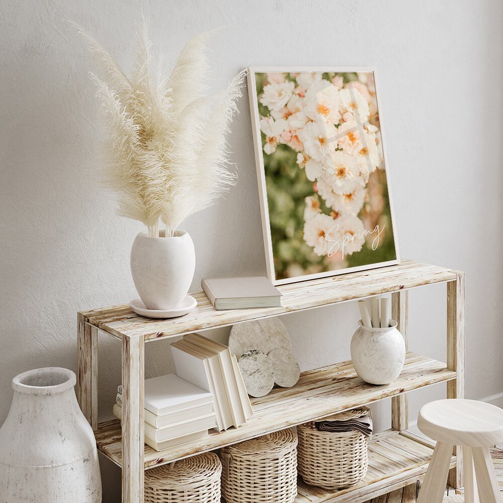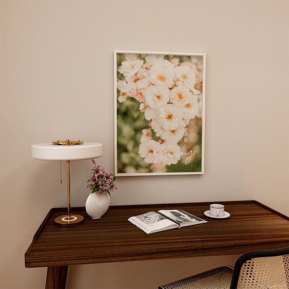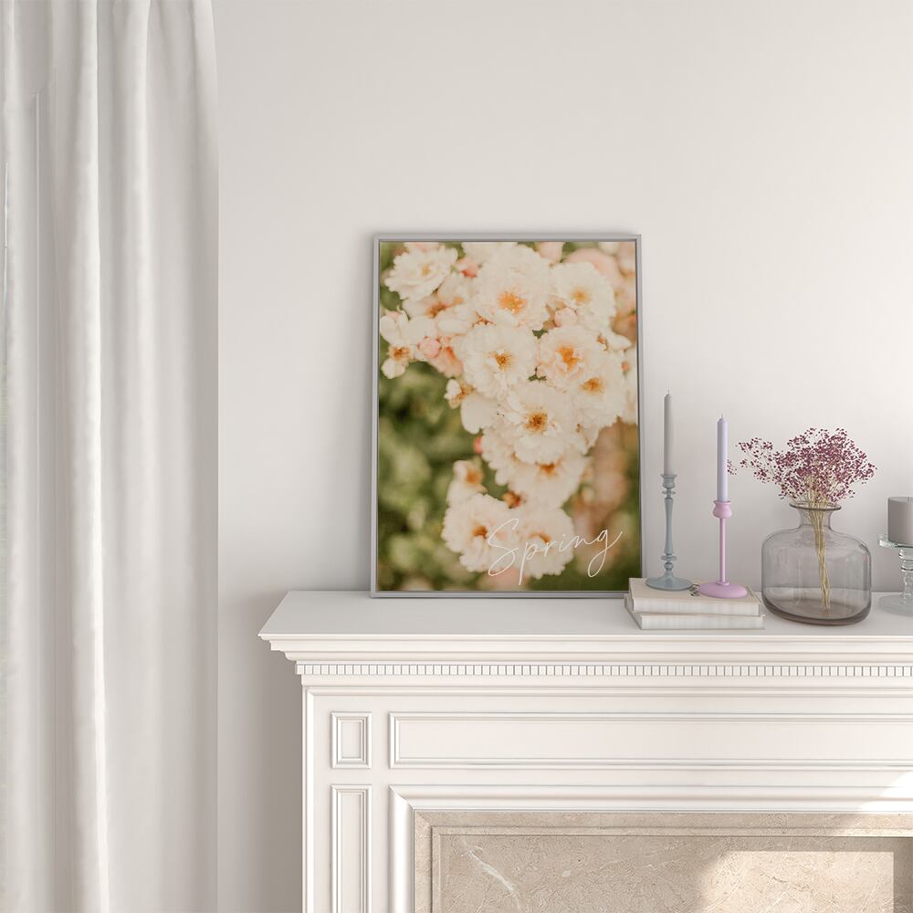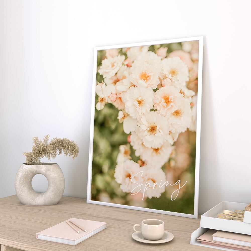 春の花のフォトポスターです。こちらは春を感じられる、綺麗な風景を中心にご用意いたしました。控えめな色で英字を入れて、おしゃれな雰囲気に仕上げています。