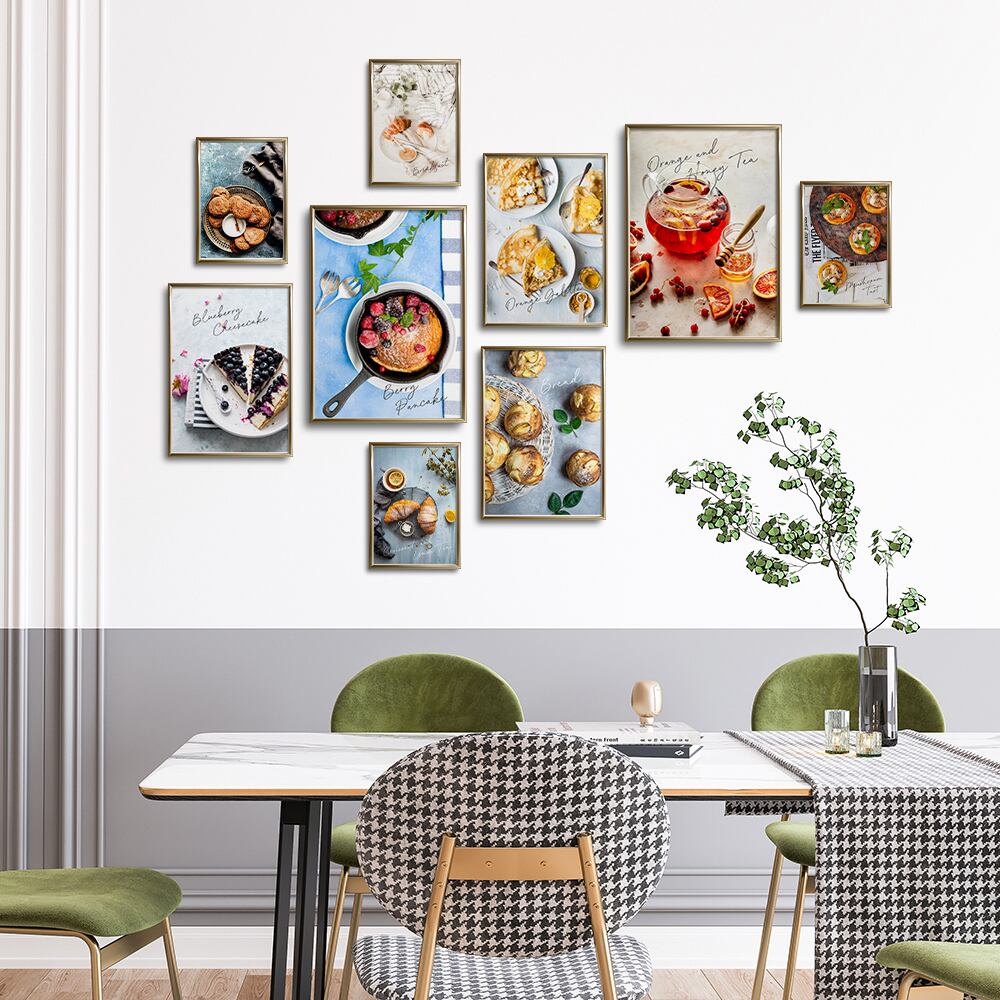 パン、パンケーキ、チーズケーキ、デニッシュ、クロワッサン、タルト、クッキーなどの食べ物のフォトポスターです。キッチンポスターとして、ぜひ取り入れてみてくださいね。