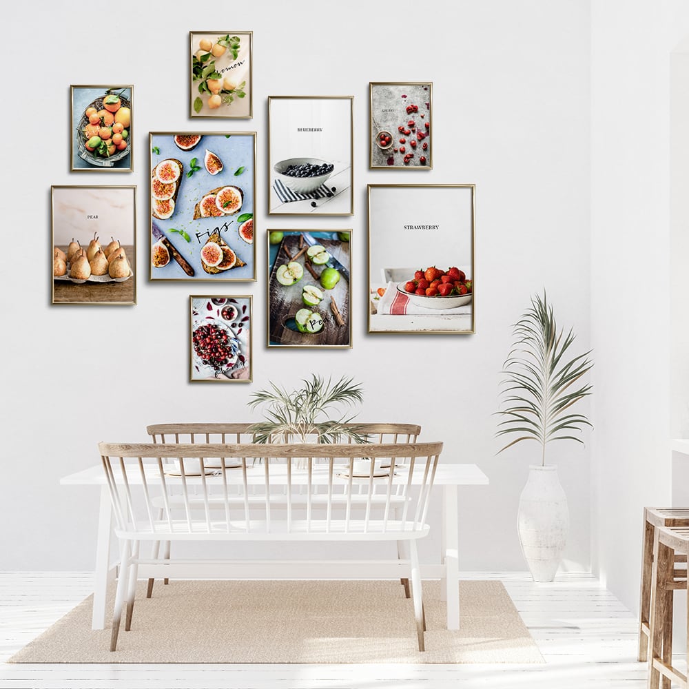 フルーツのフォトポスターです。イチゴやブルーベリー、イチジク、チェリー、洋梨、レモン、オレンジなど、果物をモチーフにしたポスターです。