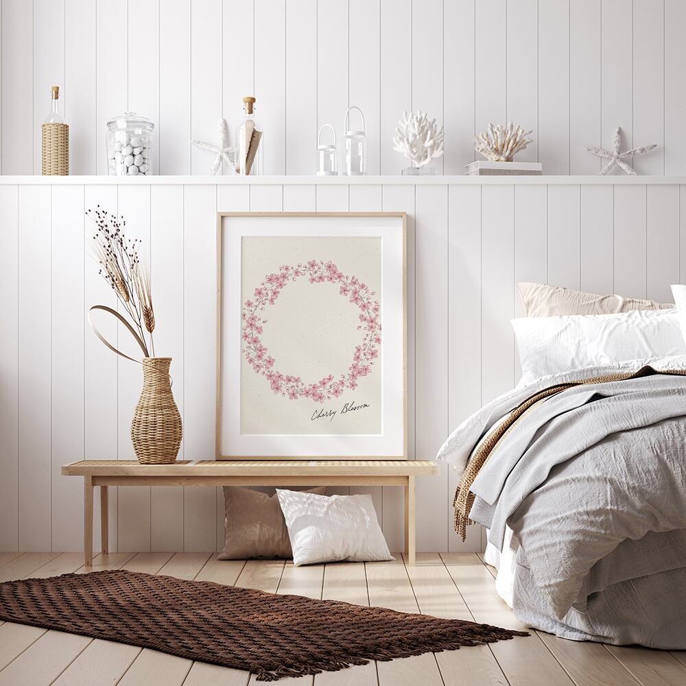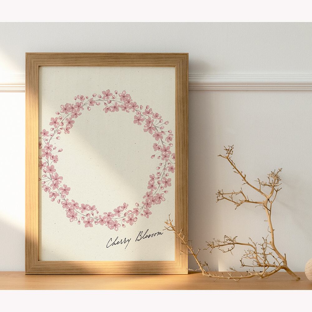 桜のリースのポスター / i1254 / ミモザ、スイセン、たんぽぽ、ムスカリ、桜、忘れな草など ボタニカルポスター