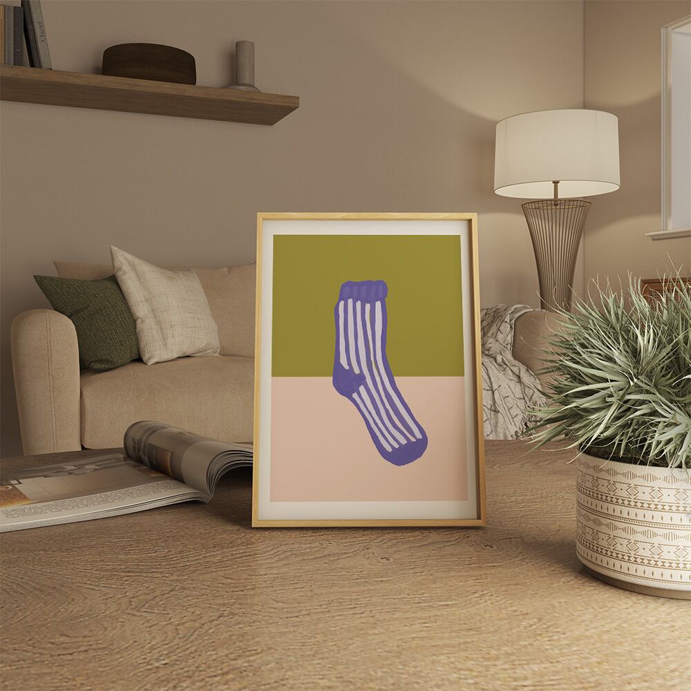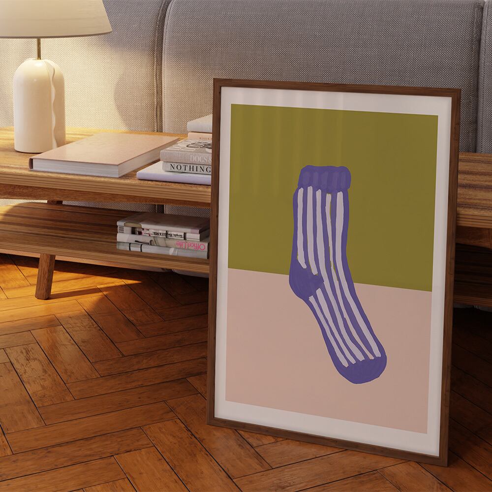 サングラスやバッグ、靴などのファッションアイテムをモチーフにしたモダンなポスターです。マットなタッチとくすんだ色合いが今流行りのデザインですね。韓国風のインテリアにも合いそうです。