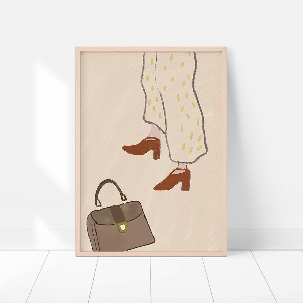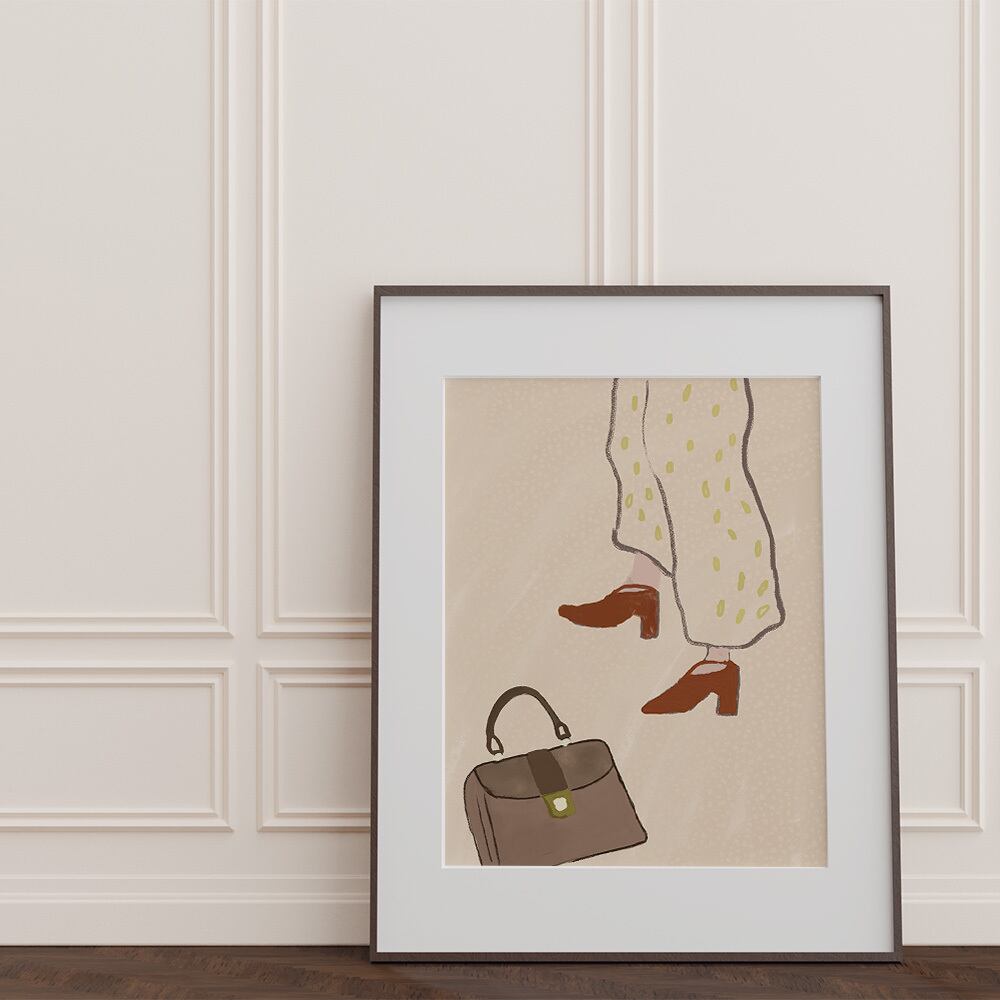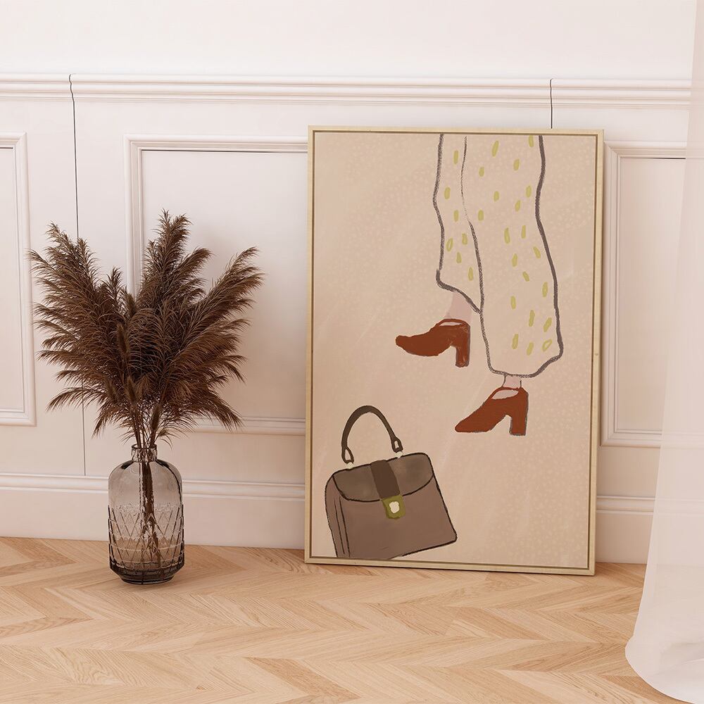 サングラスやバッグ、靴などのファッションアイテムをモチーフにしたモダンなポスターです。マットなタッチとくすんだ色合いが今流行りのデザインですね。韓国風のインテリアにも合いそうです。