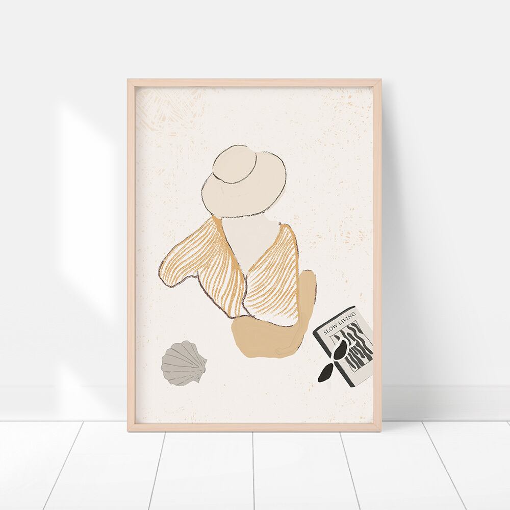 サングラスやバッグ、靴などのファッションアイテムをモチーフにしたモダンなポスターです。マットなタッチとくすんだ色合いが今流行りのデザインですね。韓国風のインテリアにも合いそうです。