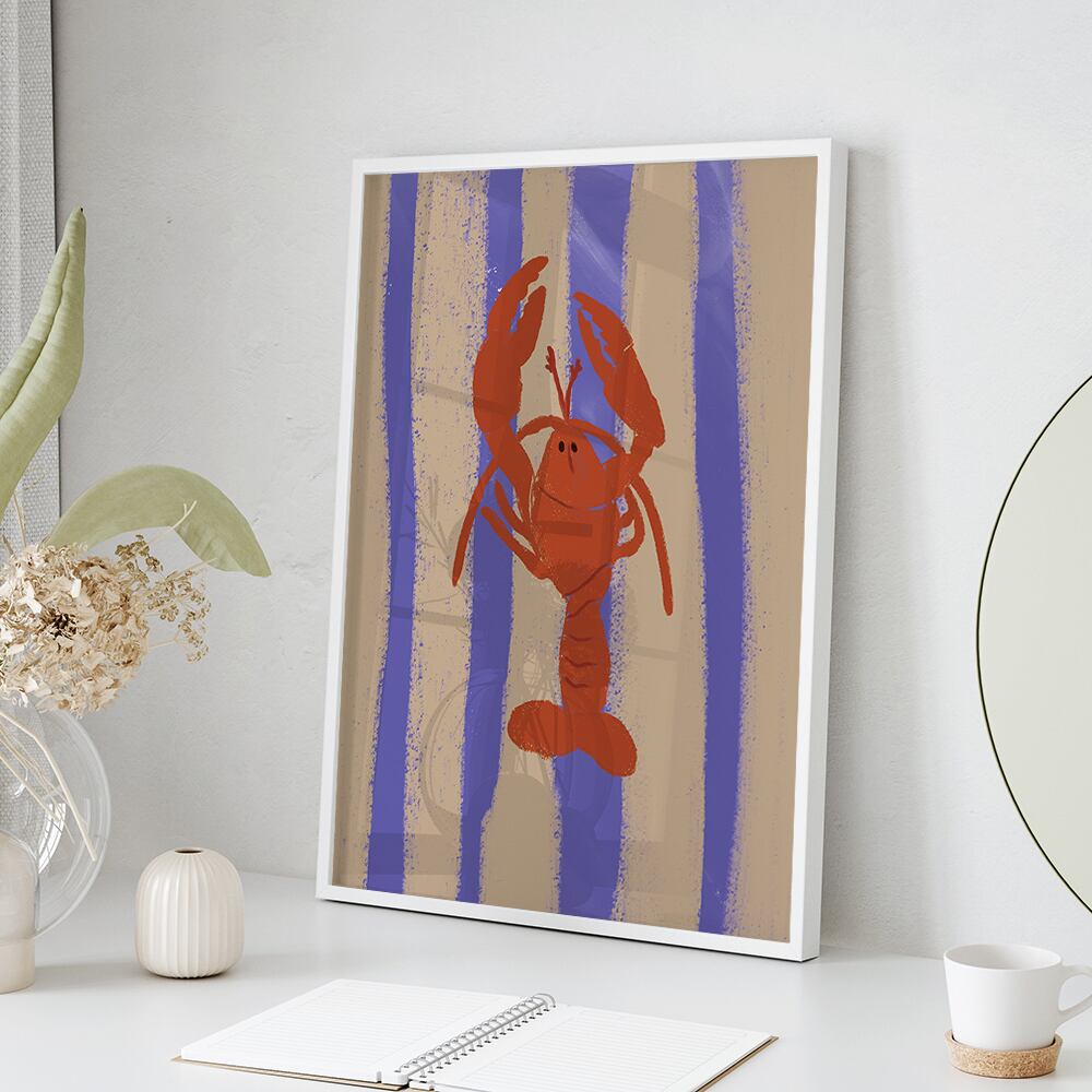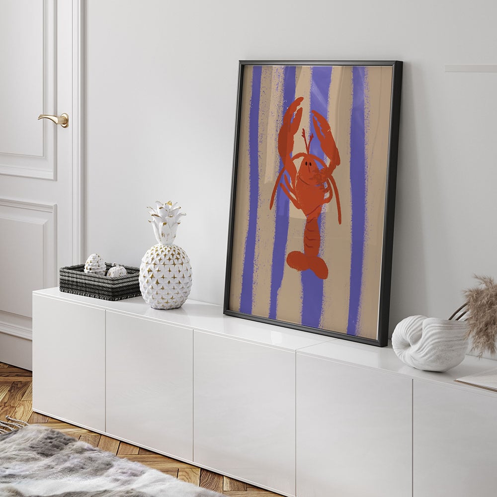 レモン、アボカド、バナナ、ロブスター、洋梨などの食べ物をモチーフにしたモダンアートです。
