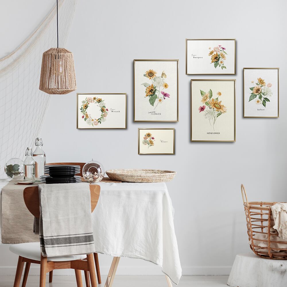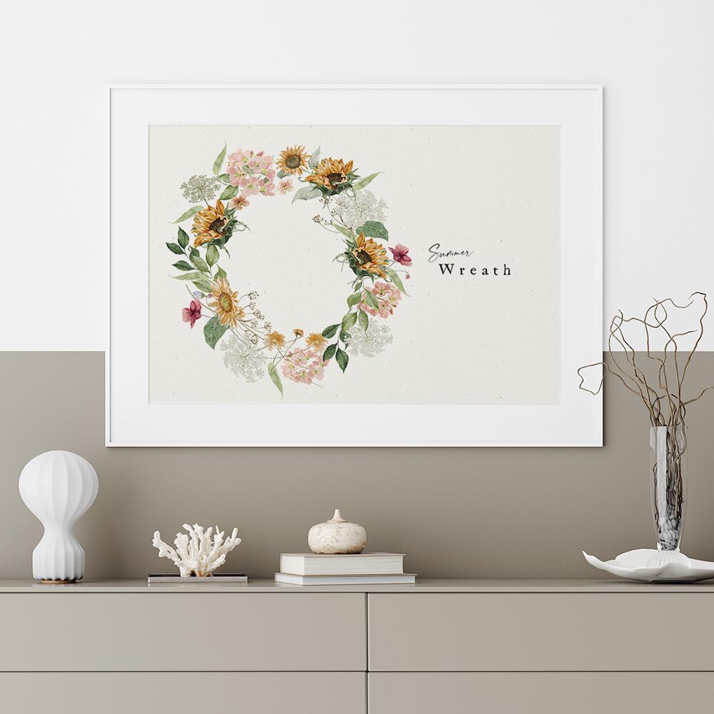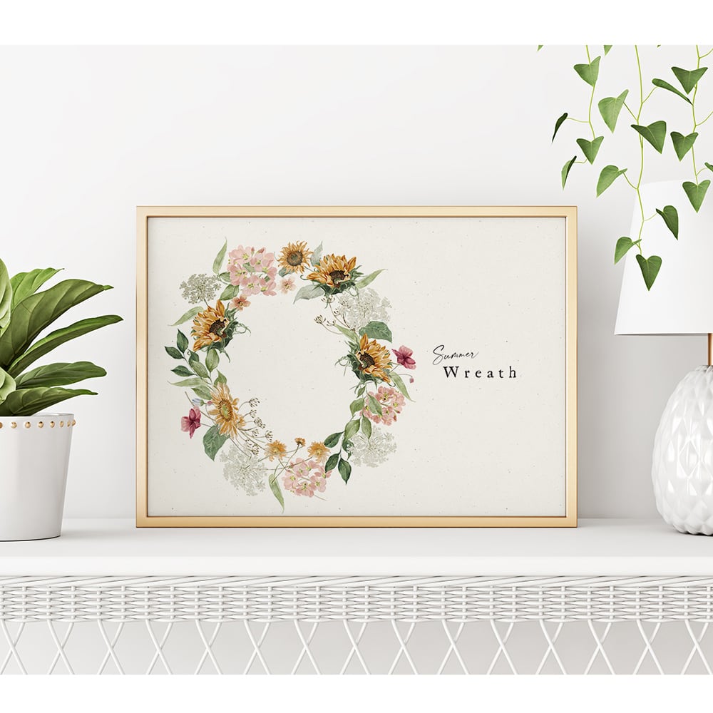 夏に向けて、ひまわりのポスターをご用意しました!ひまわりにあじさい、小花をモチーフに、花束やリース状に仕上がっています。控えめな英字を使ったり、背景にもナチュラルな素材を利用したりして、大人可愛いひまわりポスターになっていると思います♪