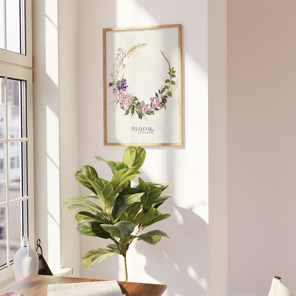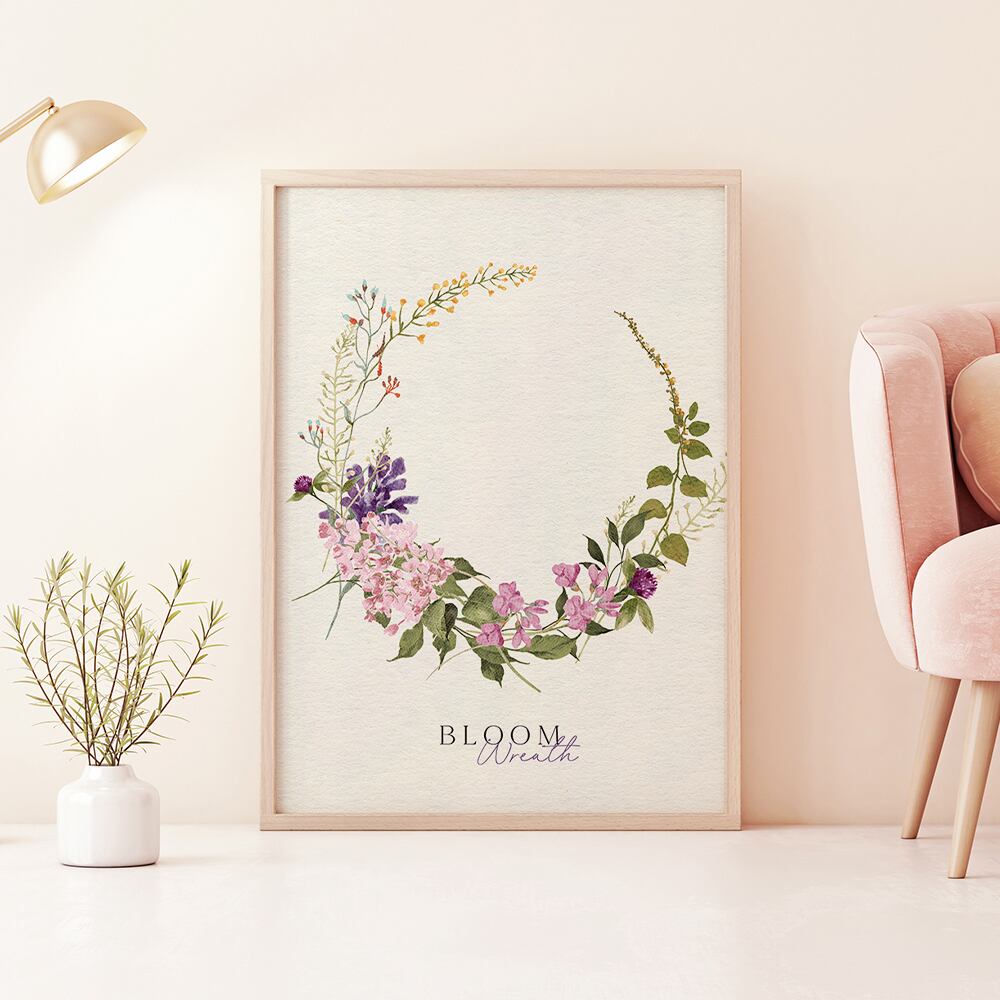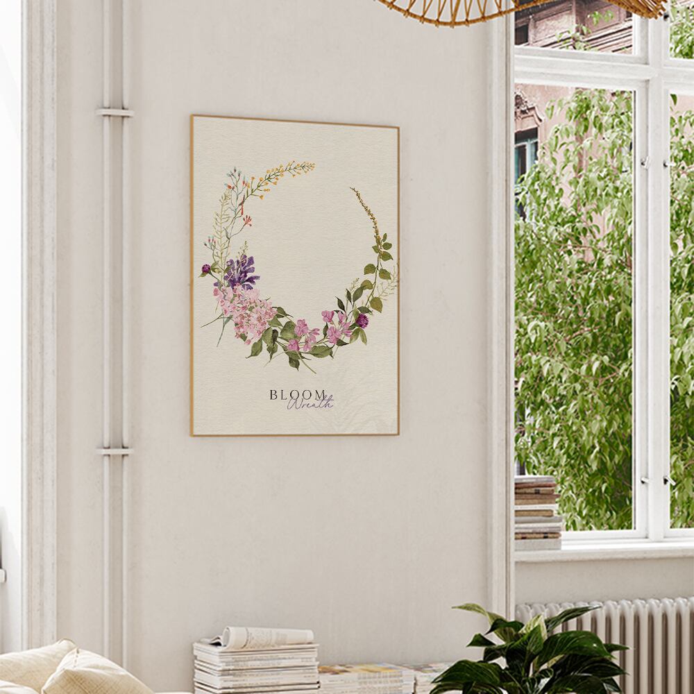 ライラックやチューリップ、水仙やミモザ、千日紅などのお花が束になっているポスターです。紫やピンク、白や黄色で品良くまとまっています。花束タイプやリースタイプなど、お好みのものをお選びください♪