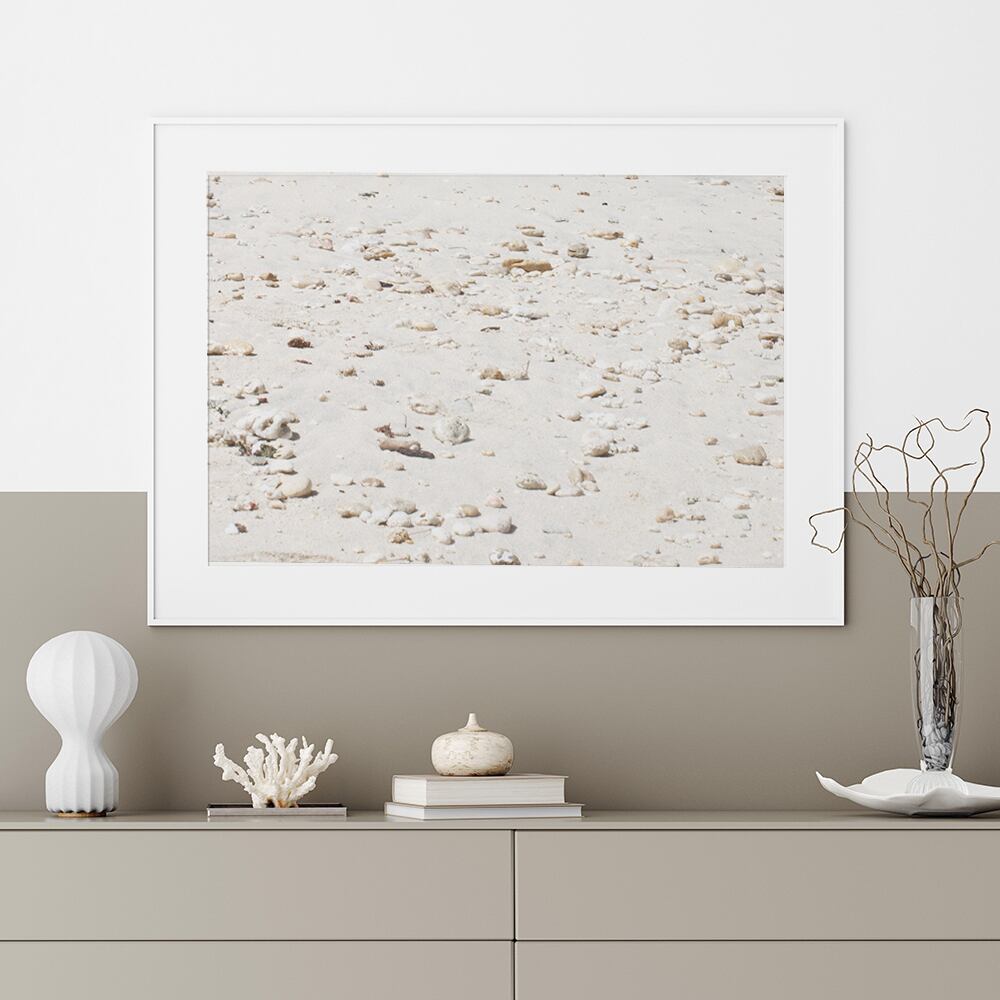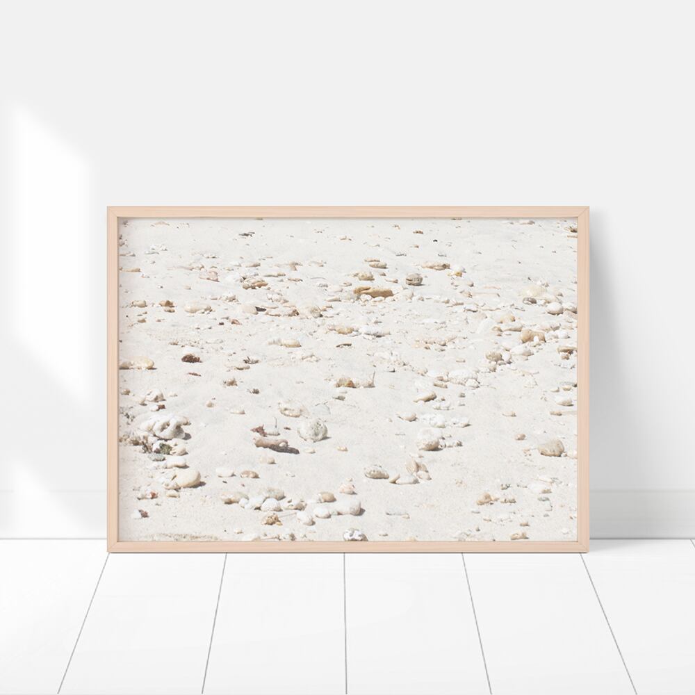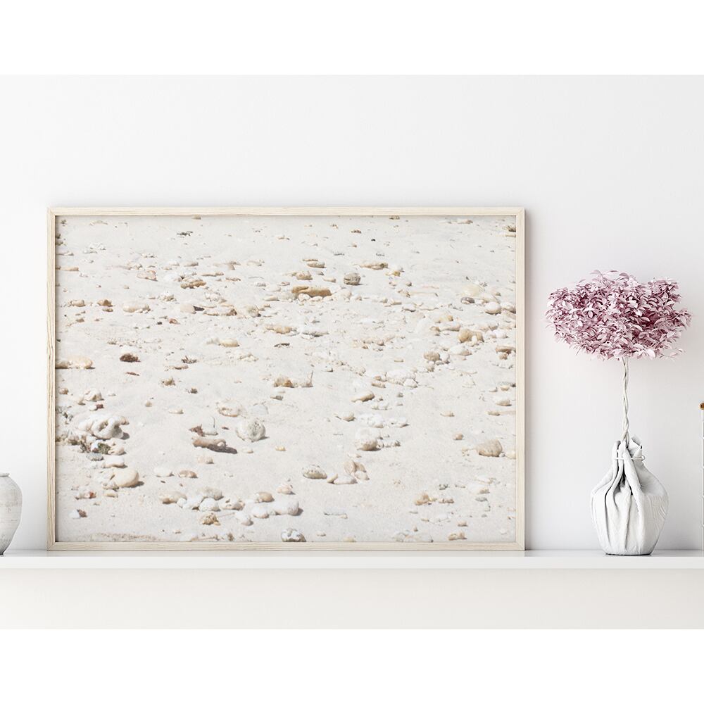 広大な海の美しい風景をご自宅で楽しめるポスターです。さまざまな海の生き物や貝殻、ヤシの木などが描かれていて、まるで本物の海辺にいるかのような気分にさせてくれます。