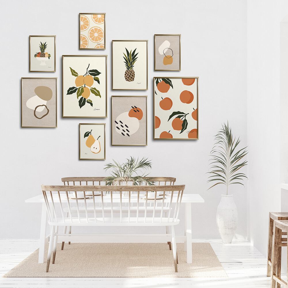 フルーツと抽象画のポスター / i1413 / パイナップル、アプリコット、洋梨など アートポスター