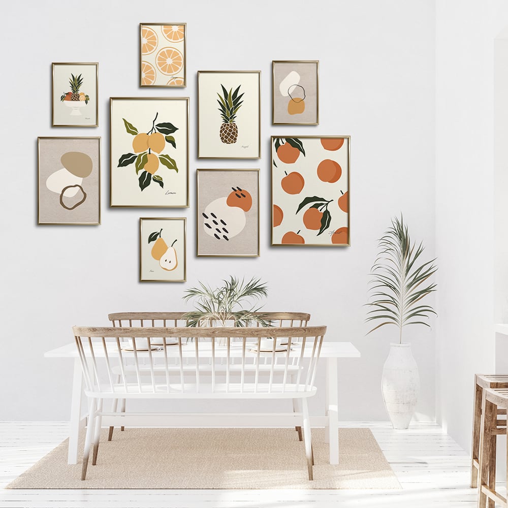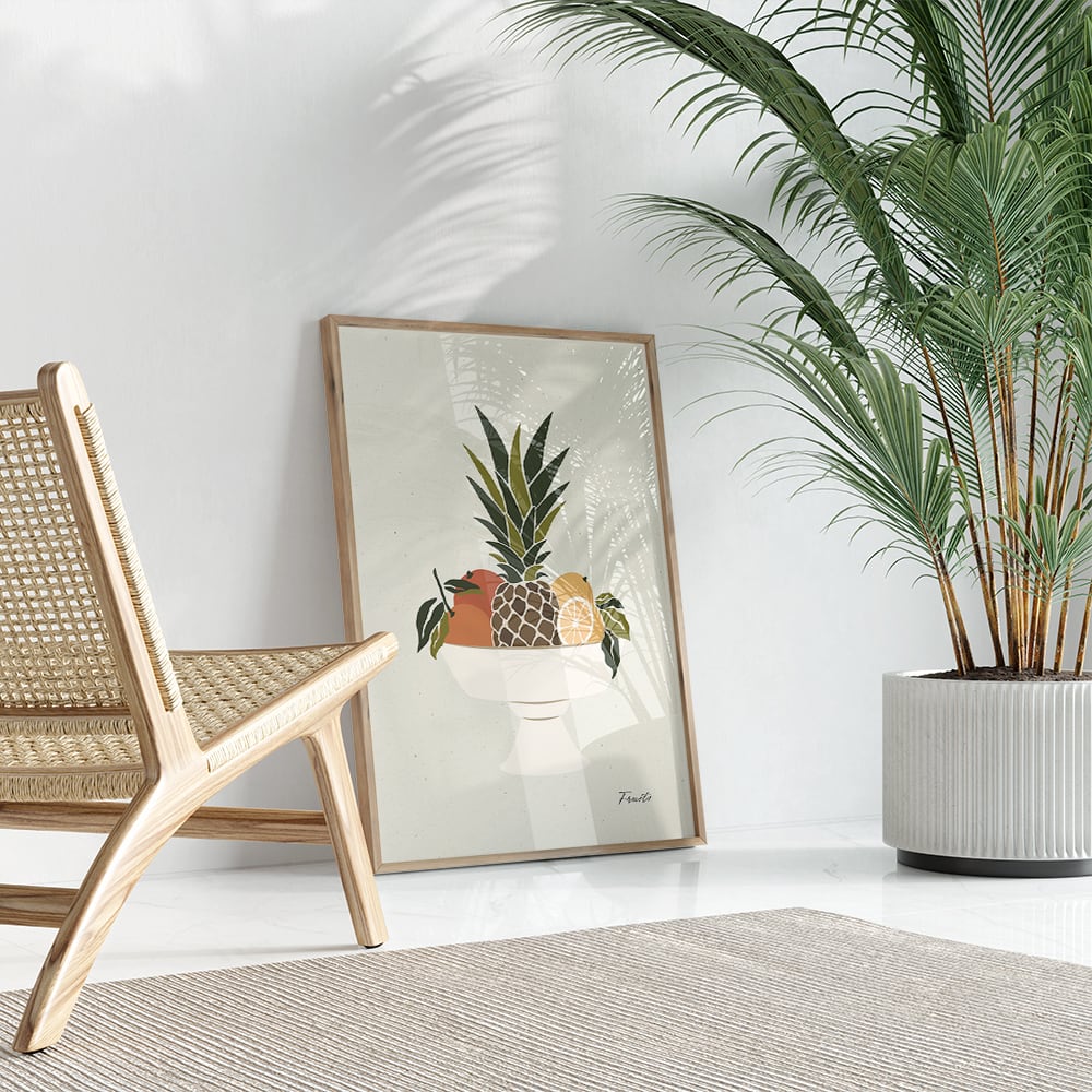 フルーツと抽象画のポスター / i1418 / パイナップル、アプリコット、洋梨など アートポスター