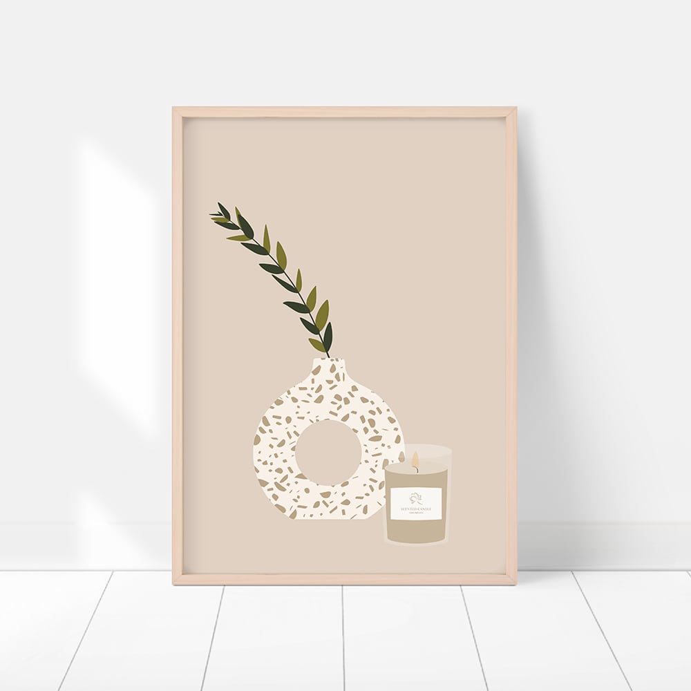 花瓶と葉のポスター / i1423 / ベージュ調の抽象画 花や葉 韓国インテリア アートポスター