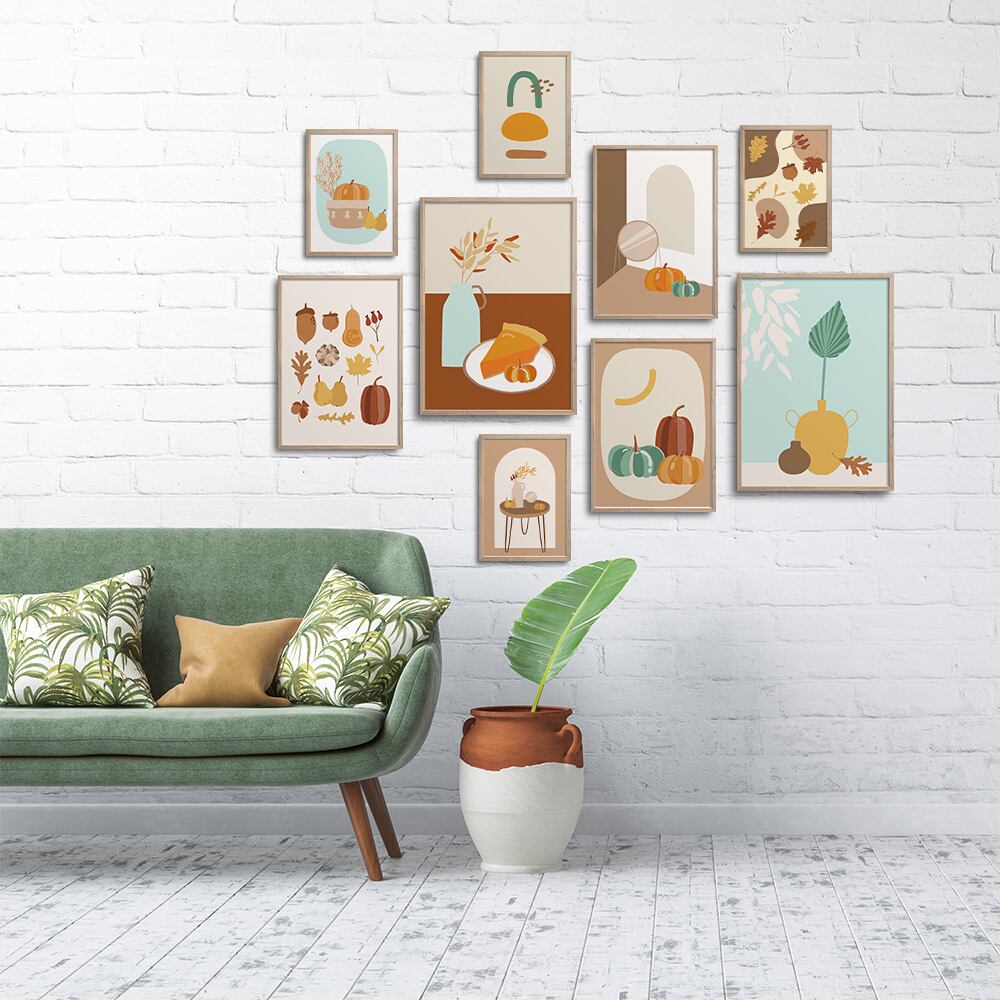 ハロウィンのポスター / i1463 / かぼちゃと秋の葉、抽象的な形など インテリアポスター