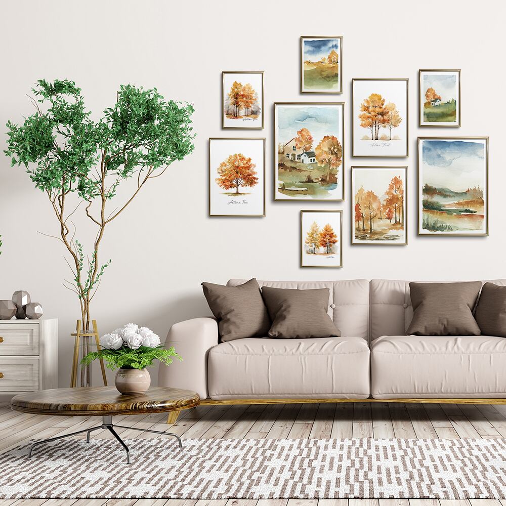 イチョウやもみじに彩られた、秋の風景です。優しいトーンの水彩画で、お部屋に安らぎを与えてくれます。ひと足早く、秋の空気を取り入れてみてはいかがでしょうか。