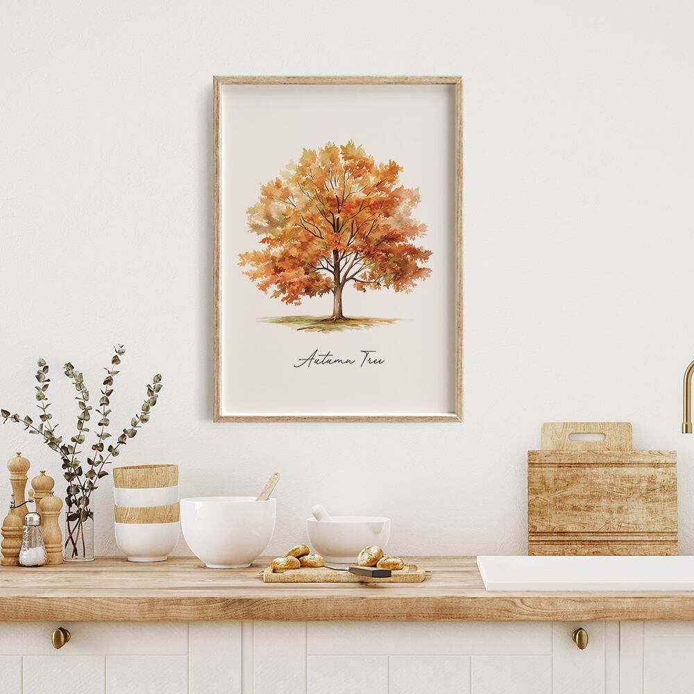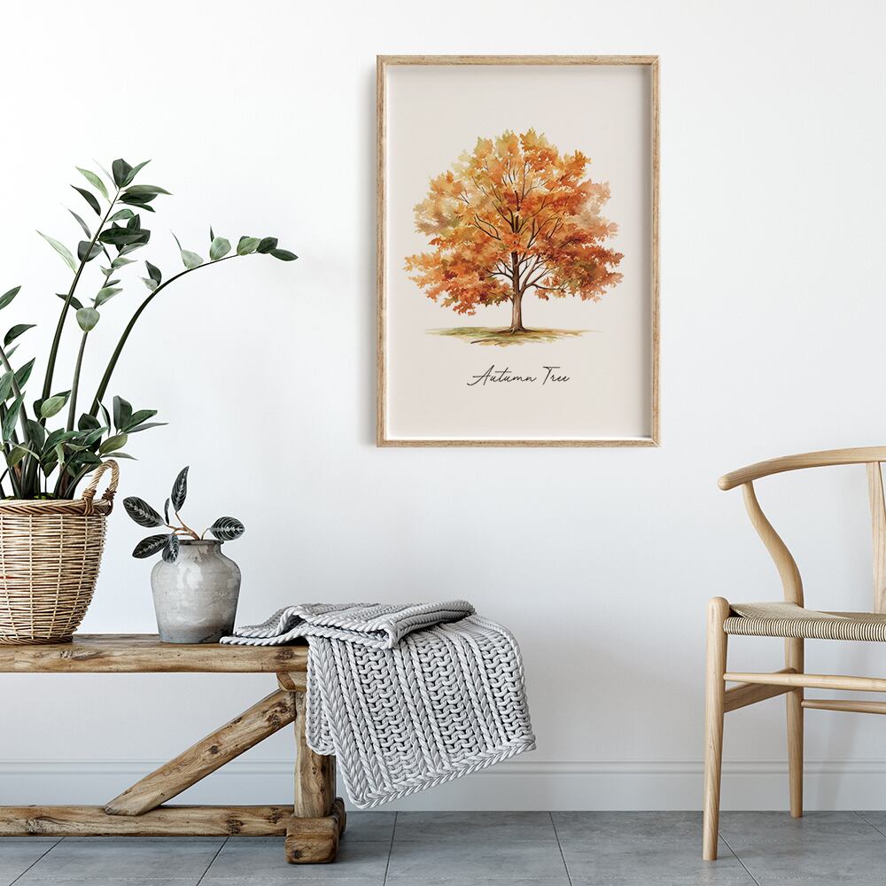 イチョウやもみじに彩られた、秋の風景です。優しいトーンの水彩画で、お部屋に安らぎを与えてくれます。ひと足早く、秋の空気を取り入れてみてはいかがでしょうか。