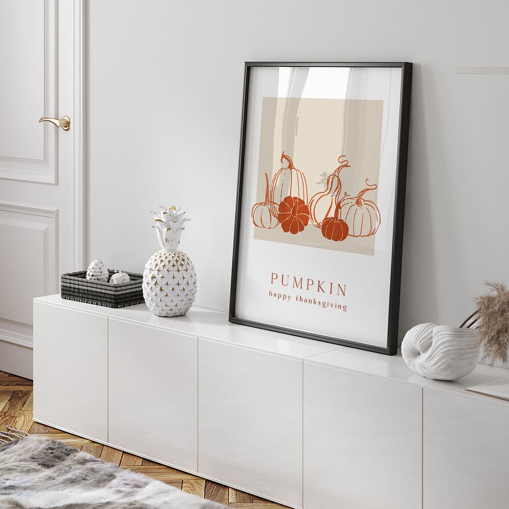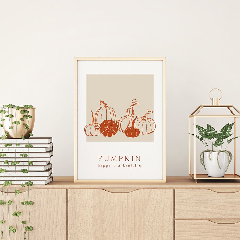 秋の紅葉をテーマにしたポスターです。モダンなかぼちゃの絵や、森の中の紅葉、落ち葉や秋の名言、アクセントにチェック柄も入れてみました。ランダムに数枚選んで飾るのもおすすめです。