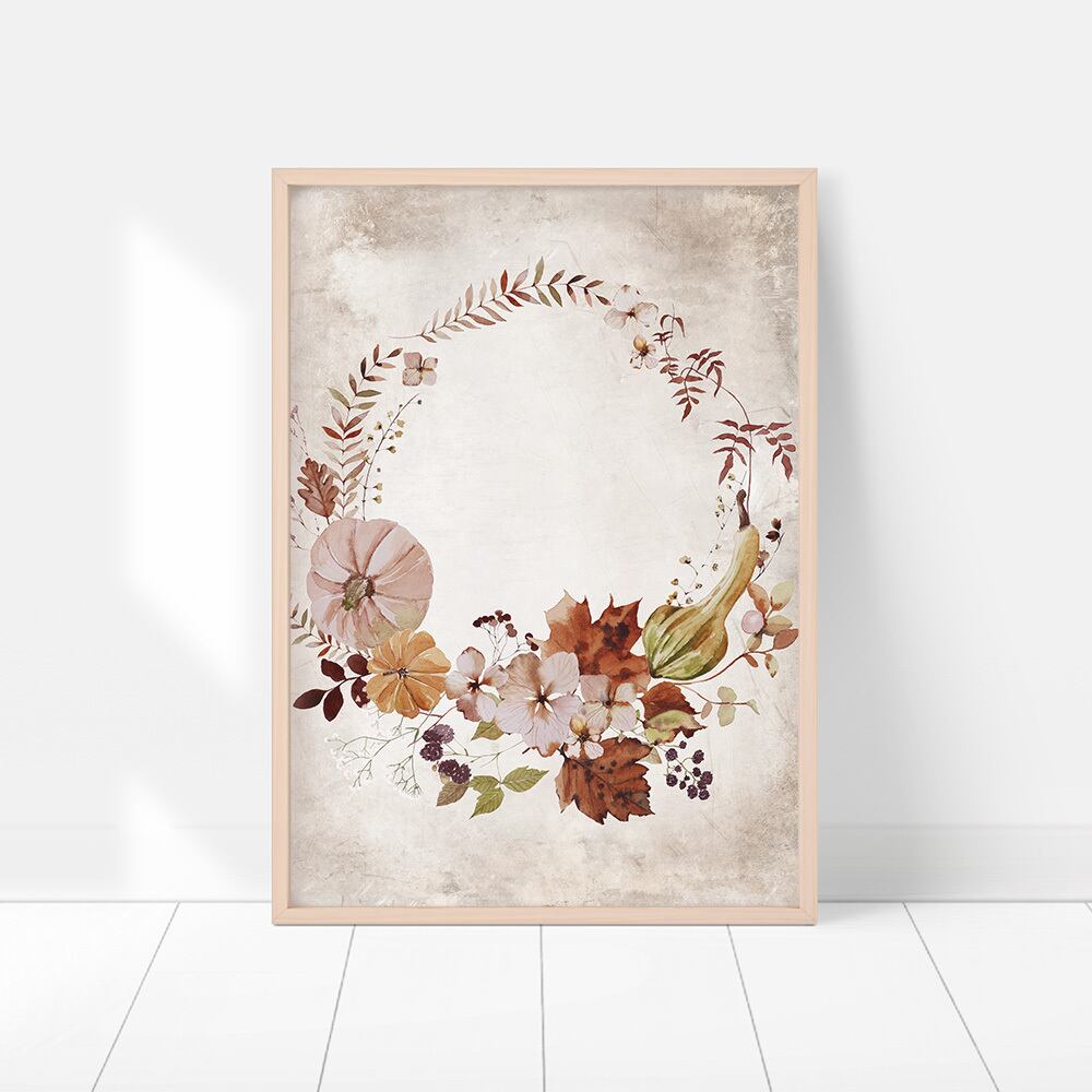 秋の収穫のポスター / i1533 / 秋の紅葉 かぼちゃや名言 水彩画 インテリアポスター
