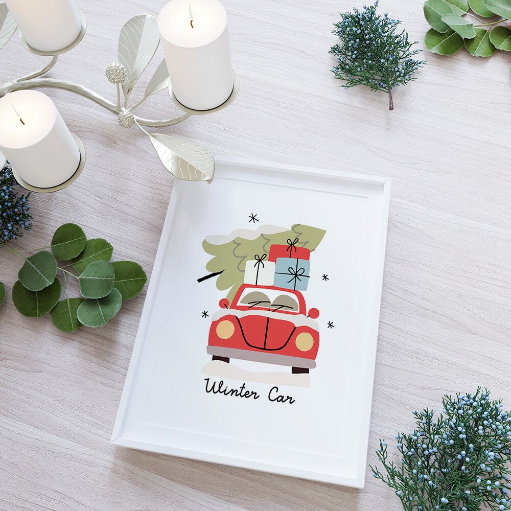 クリスマスカーのポスター / i1595 / スノードーム 冬の夜 オーナメント インテリアポスター